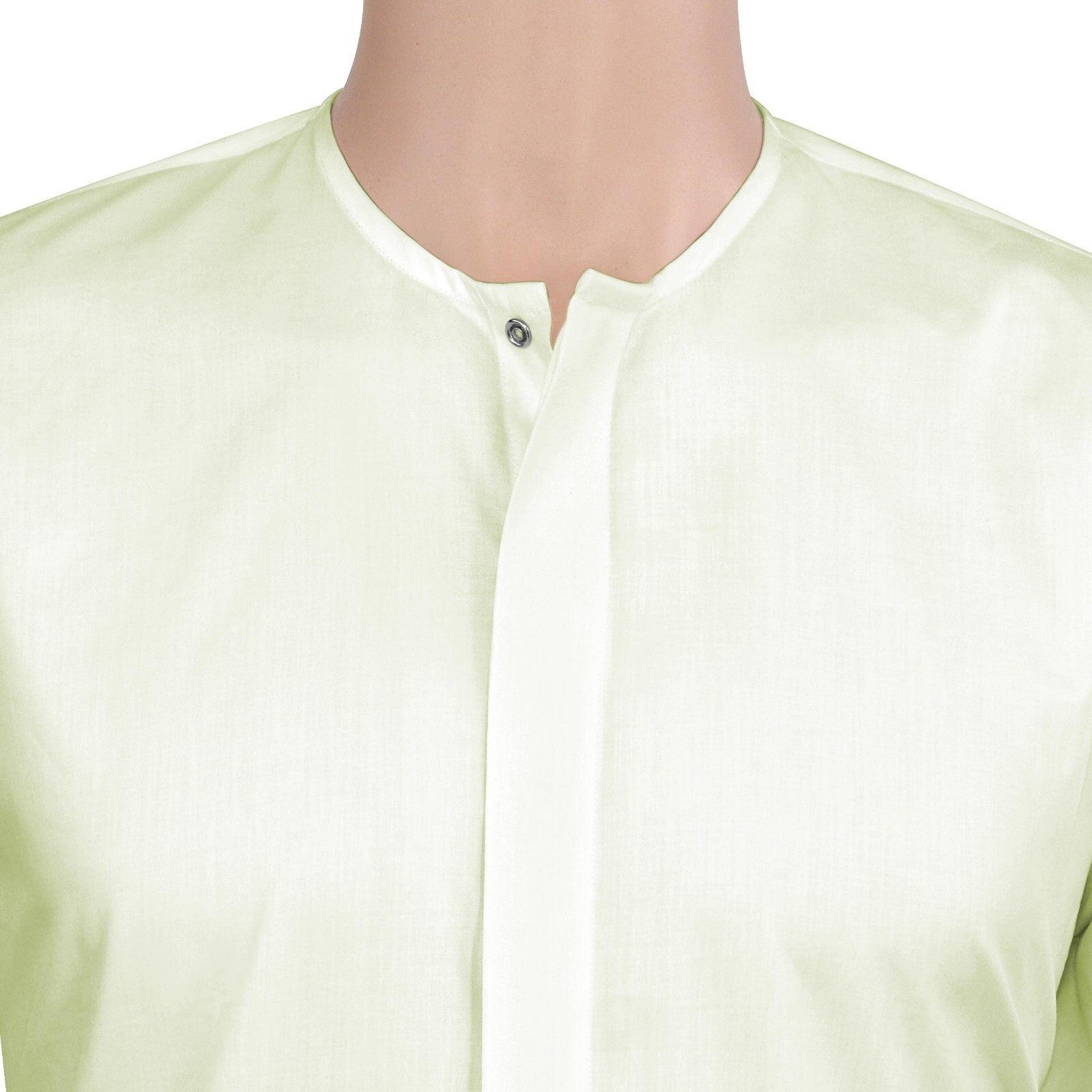 как выглядит Mens Cream Collarless Grandad Formal Hidden Placket Cotton Mandarin Dress Shirt фото