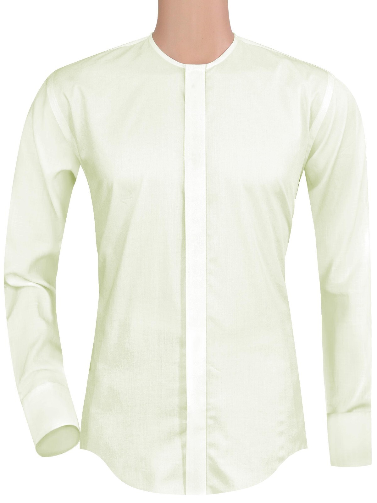 Men's Cream Collarless Grandad Formal Hidden Placket Cotton Mandarin Dress Shirt