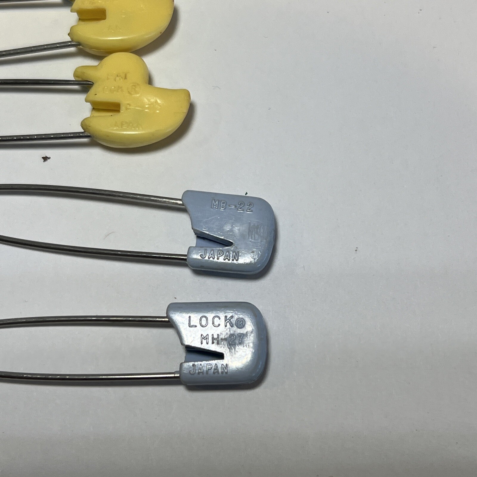Vintage Pair of Safety Diaper Pins 2.25 Japan. Yellow Ducks Solid Lt Blue