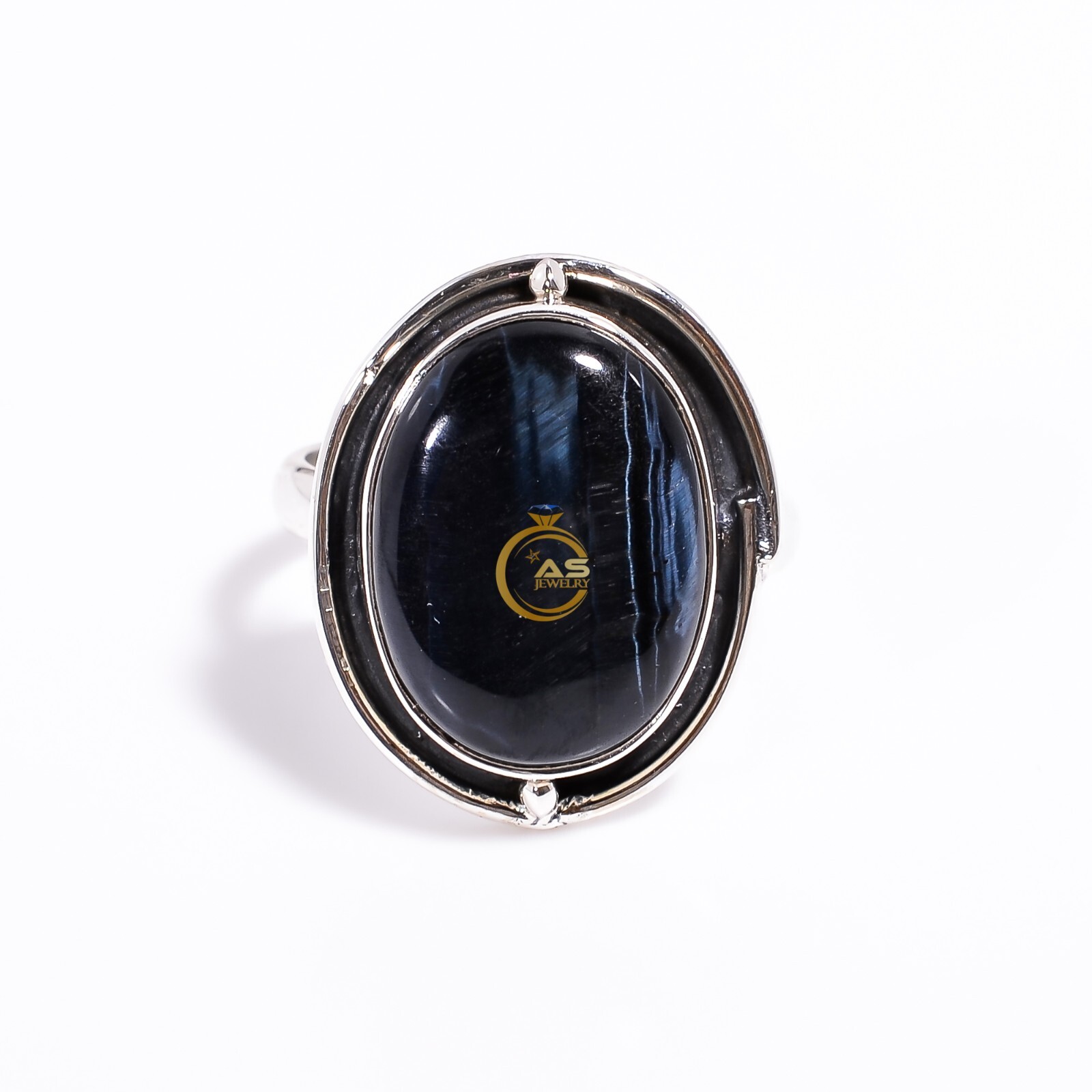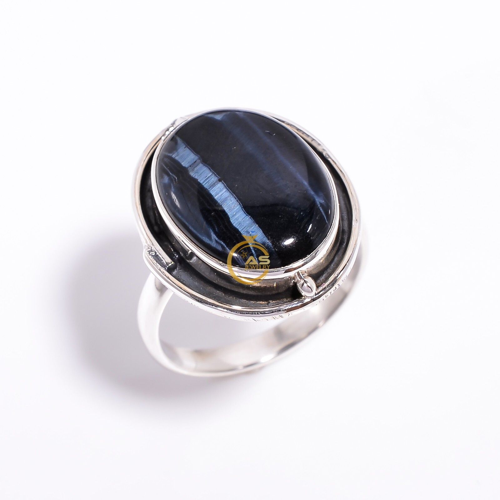 как выглядит Natural Blue Tiger Eye Gemstone Ring 925 Sterling Silver Boho Rings Jewelry фото