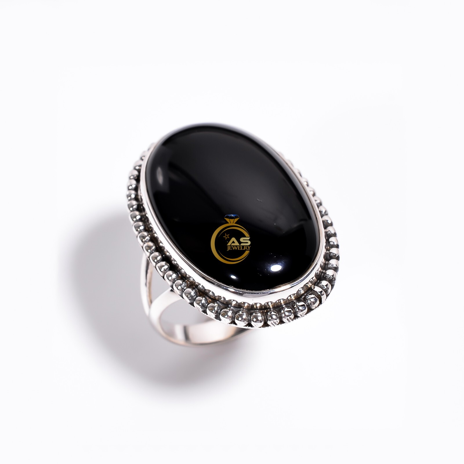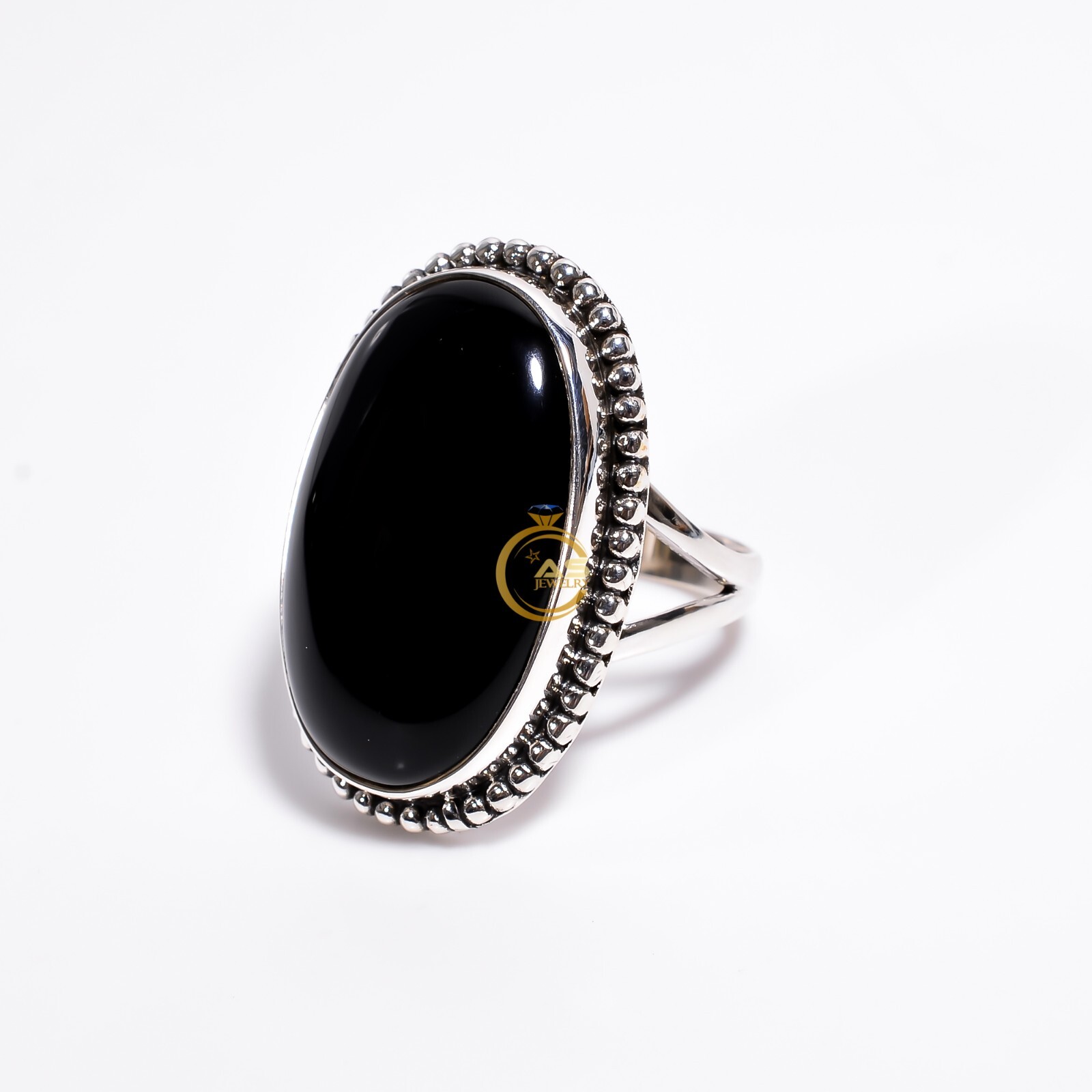 Natural Black Onyx Ring 925 Sterling Silver Statement Boho Rings Gift Jewelry