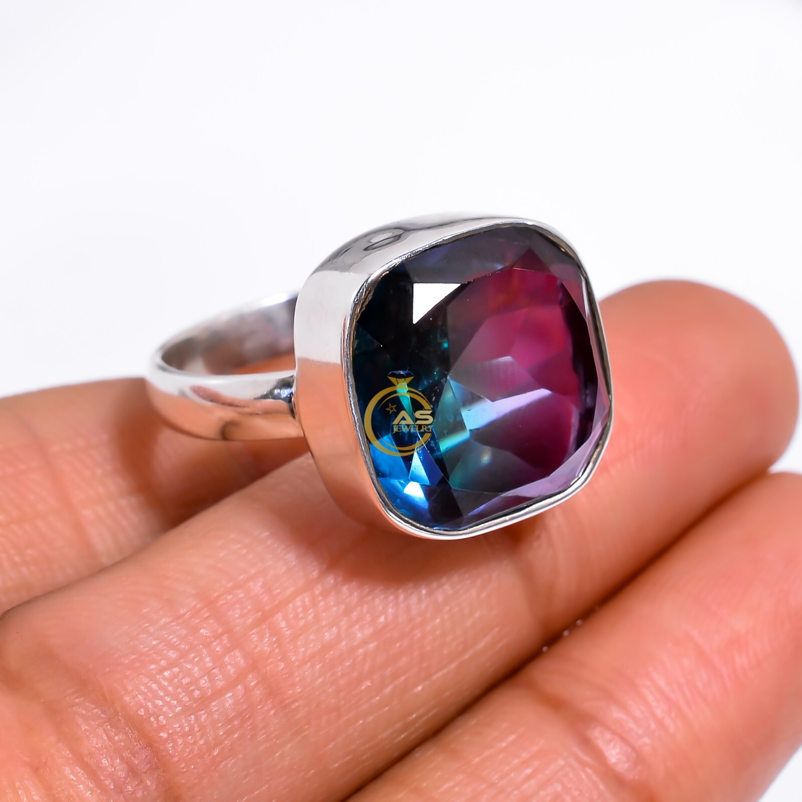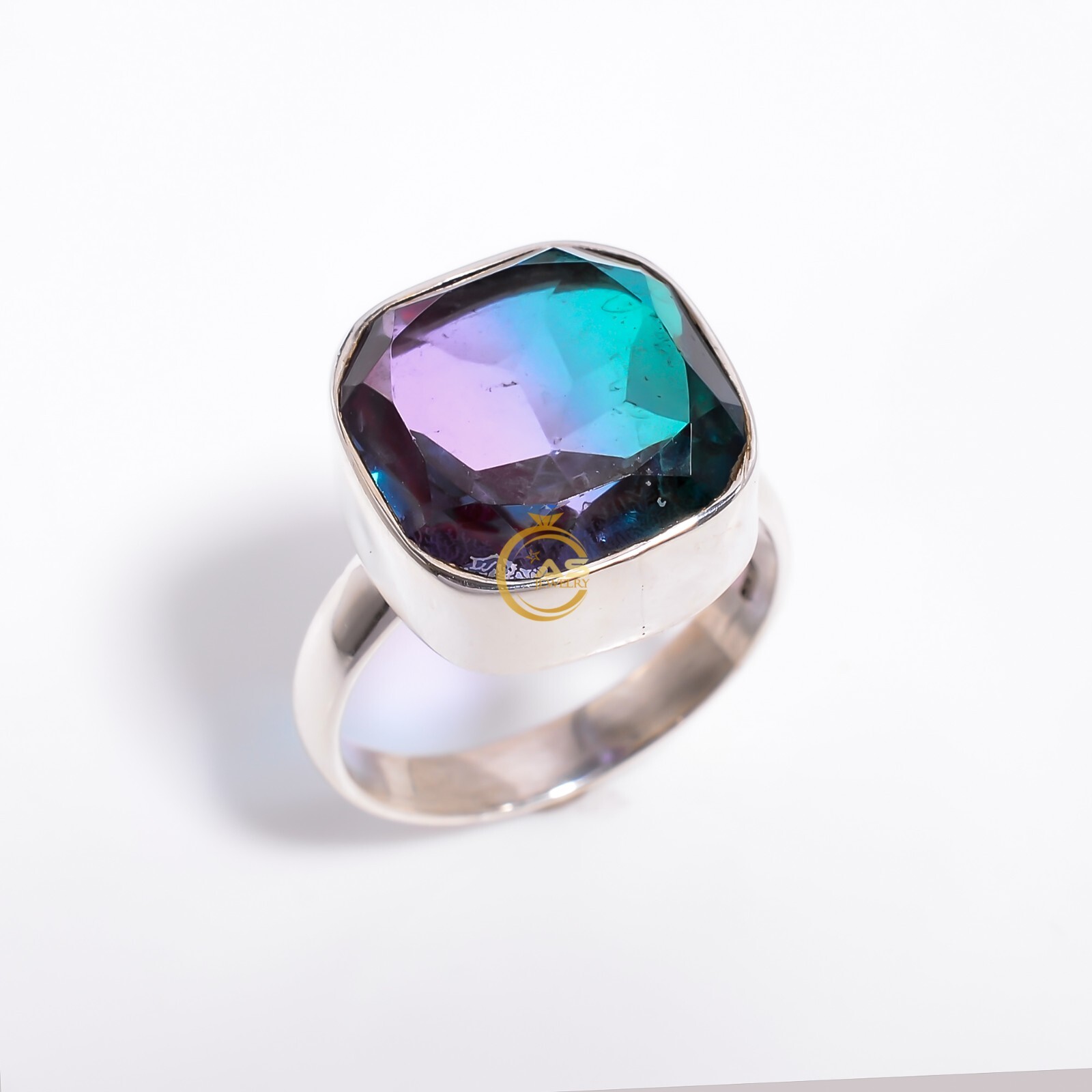 Tourmaline Glass Cushion Gemstone Ring Cut Stone 925 Sterling Silver Boho Rings