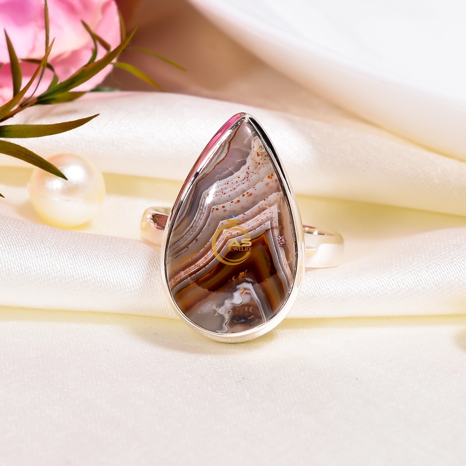 Natural Crazy Lace Agate Gemstone Ring 925 Sterling Silver Handmade Ring Jewelry