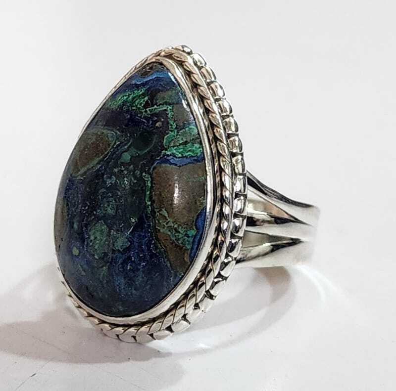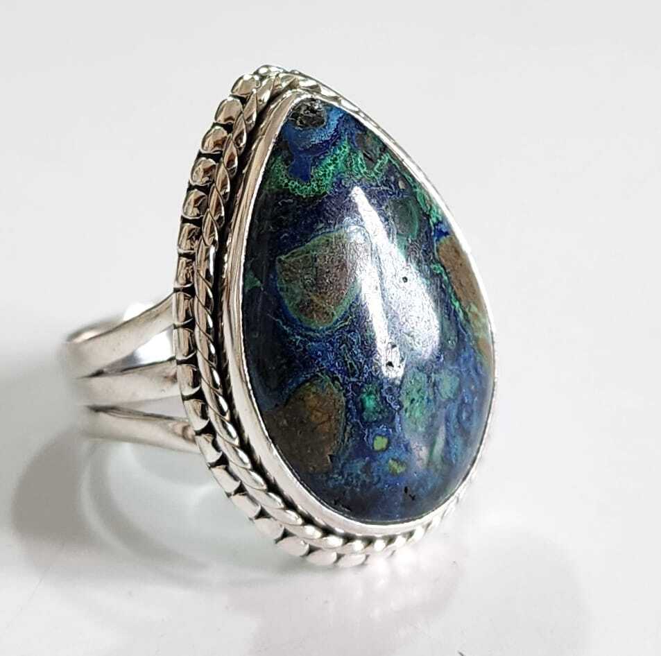 как выглядит AZURITE NATURAL GEMSTONE RING 925 STERLING SILVER HANDMADE JEWELRY RING 3 TO 12 фото