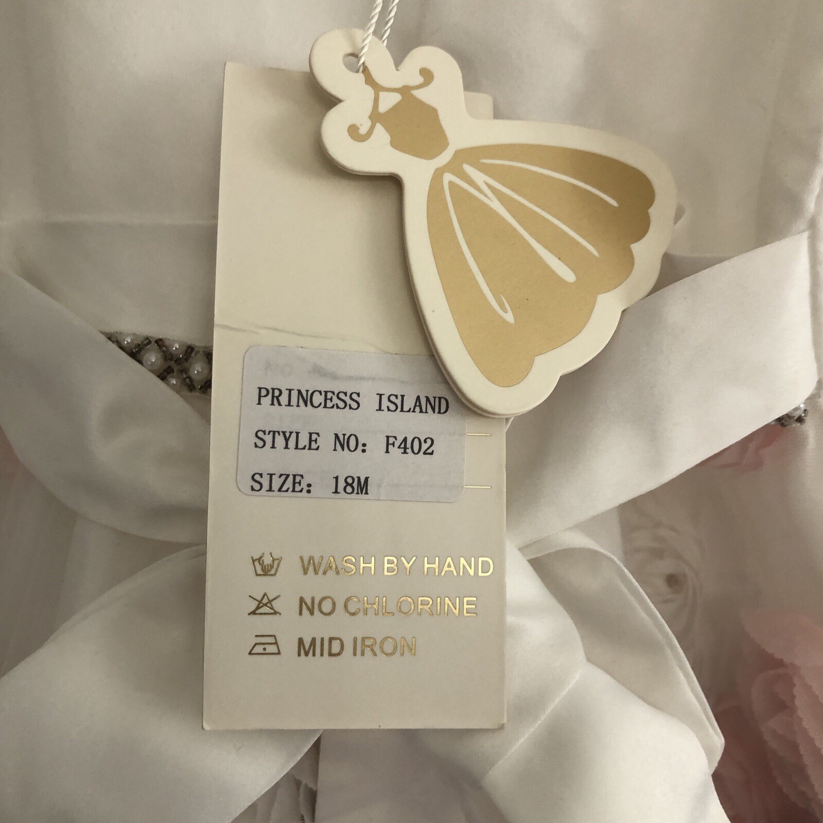 как выглядит Princess Island Girls Size 18 M White Dress w/ Pink White Gray Roses Bow Pearl фото