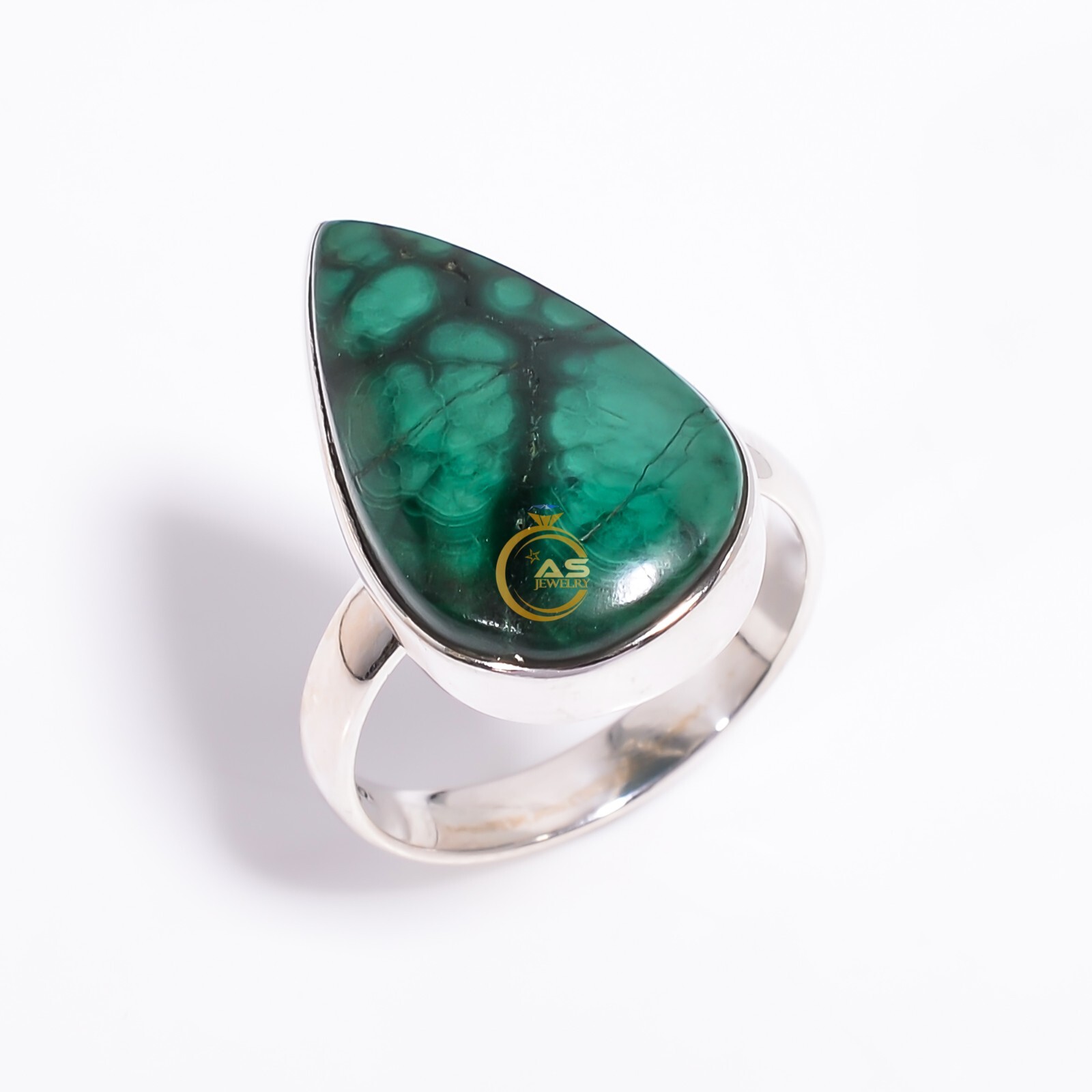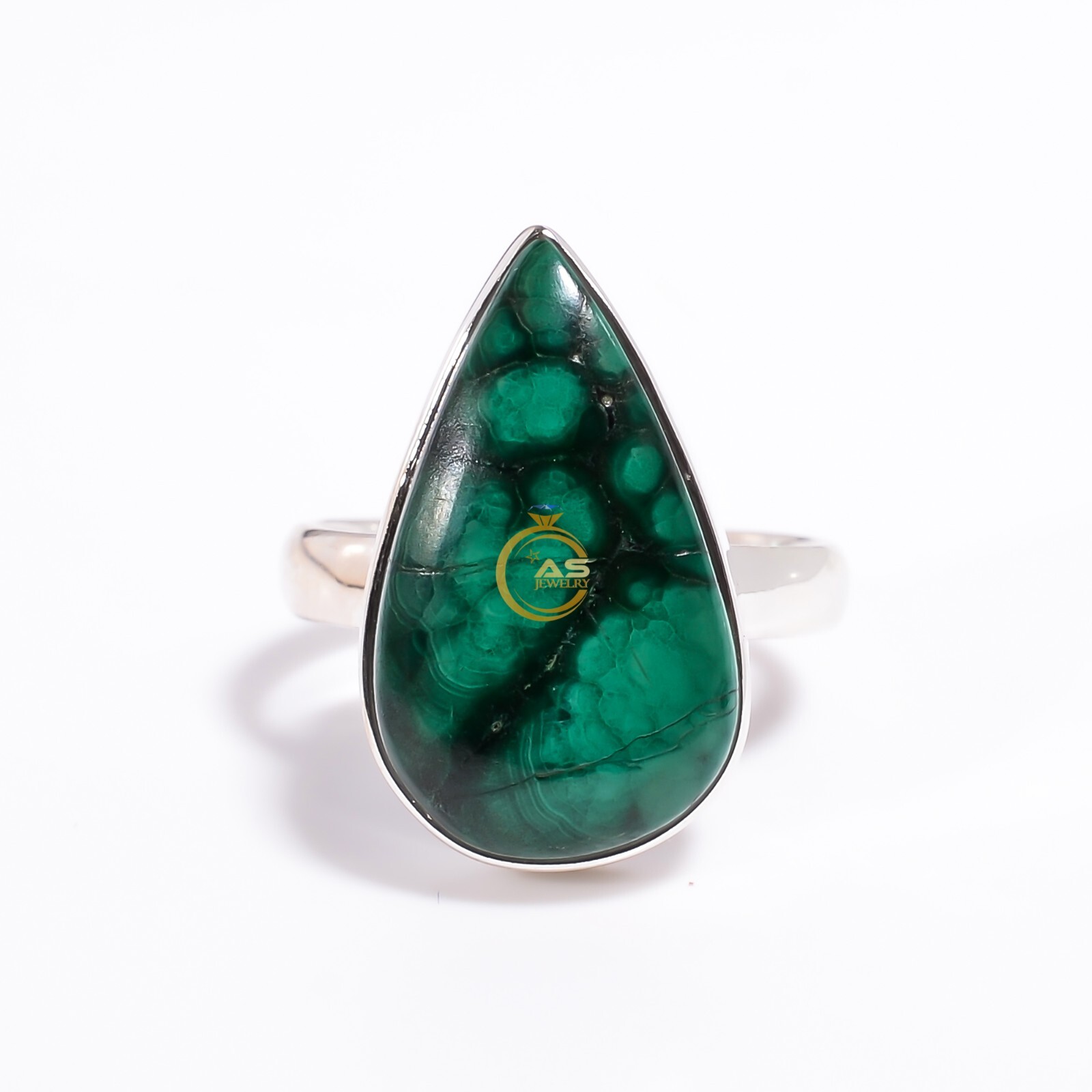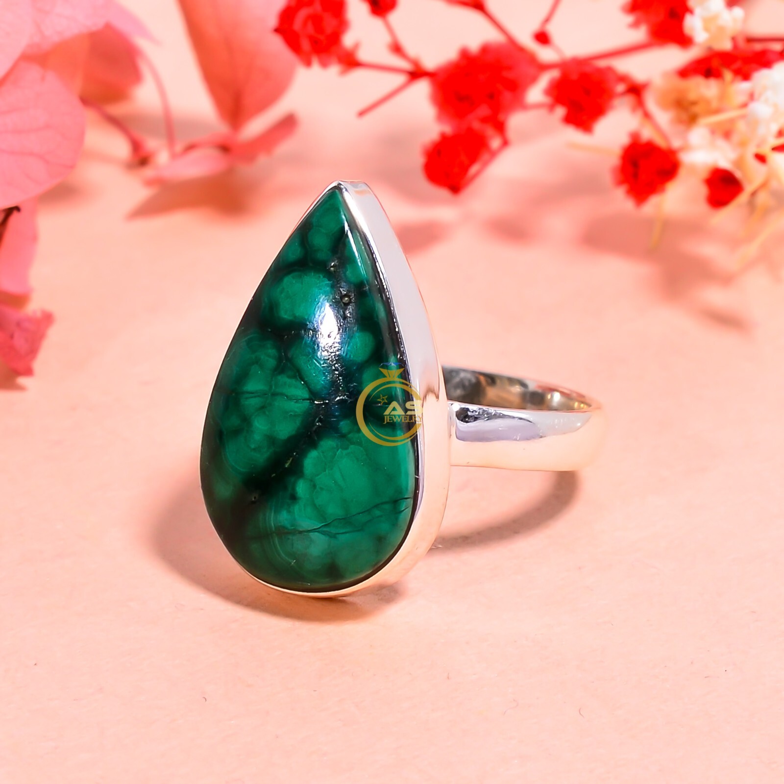 Malachite Gemstone Ring 925 Sterling Silver Statement Rings Gift Jewelry Women