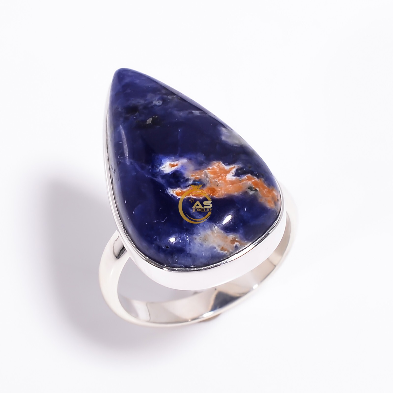 Natural Sodalite Gemstone Ring Blue Stone 925 Sterling Silver Boho Rings Jewelry