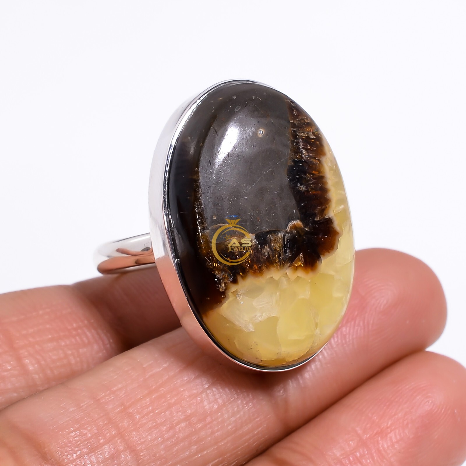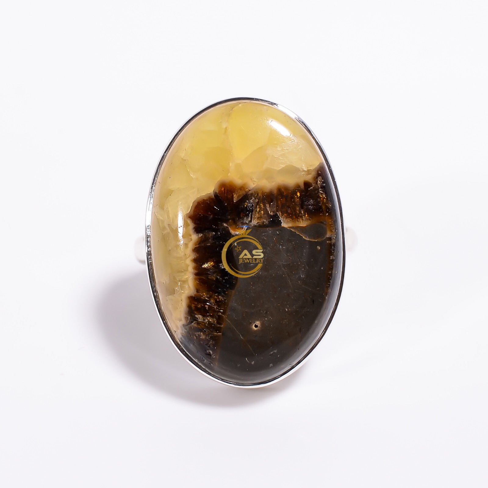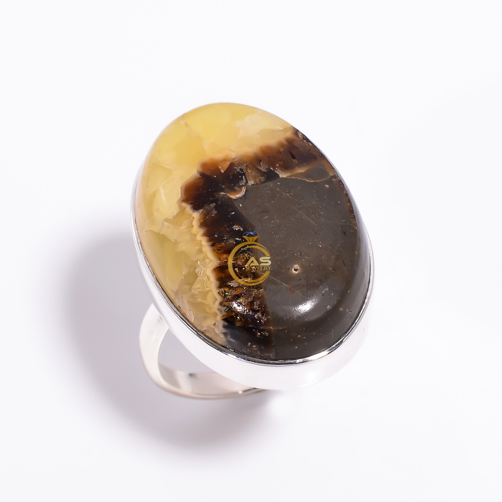 Yellow Septarian Jasper Ring 925 Sterling Silver Statement Rings Gift for Her