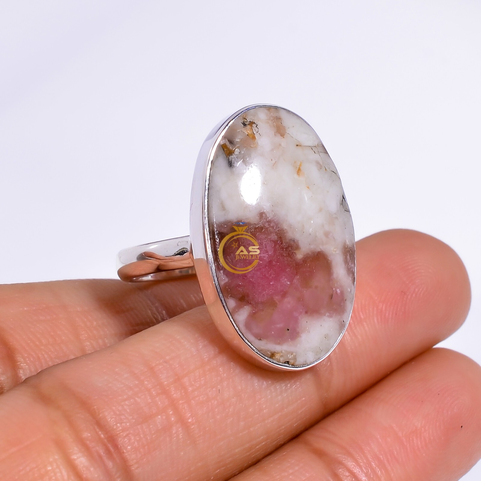 Pink Tourmaline Agate Ring 925 Sterling Silver Statement Ring Gift for Her
