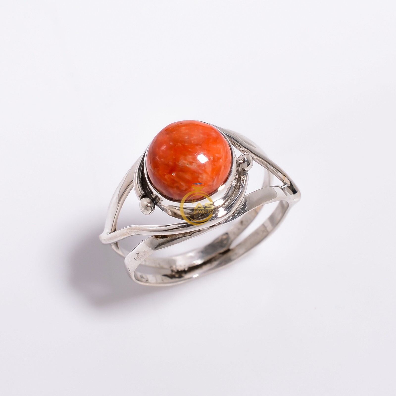 Oyster Sell Gemstone Orange Stone 925 Sterling Silver Promise Ring Gift Jewelry
