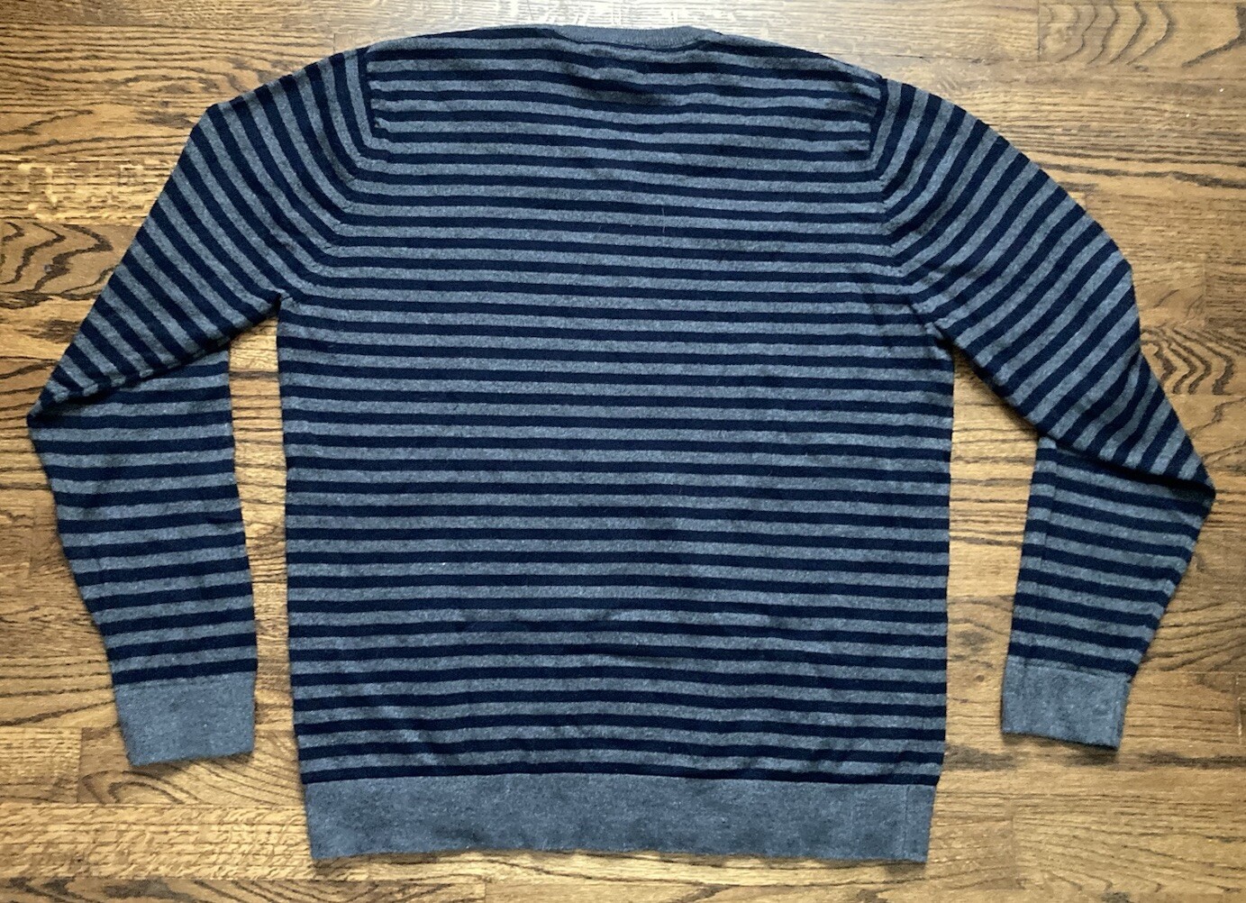 как выглядит LL Bean Mens Sweater Cotton Cashmere Blend V Neck Striped Sz Large Pullover фото