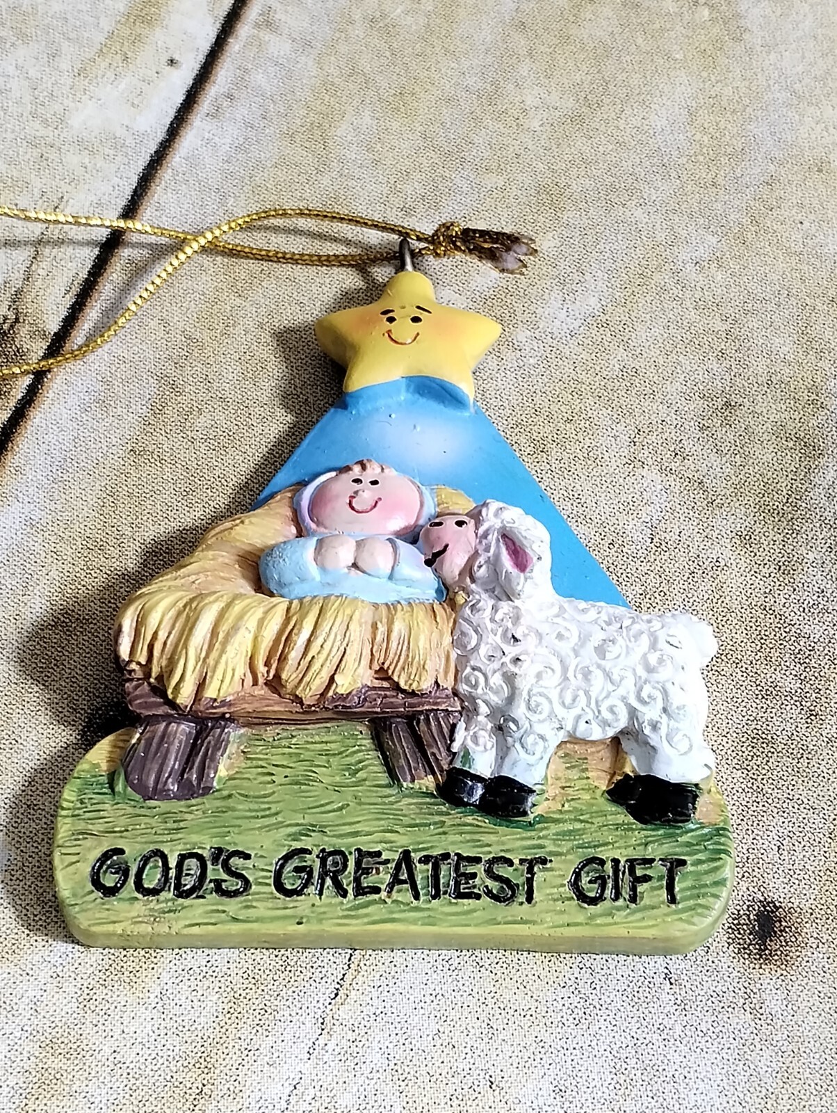 Lot Nativity 3D GODS GREATEST GIFT Baby Jesus Smiling Star Christmas Ornaments