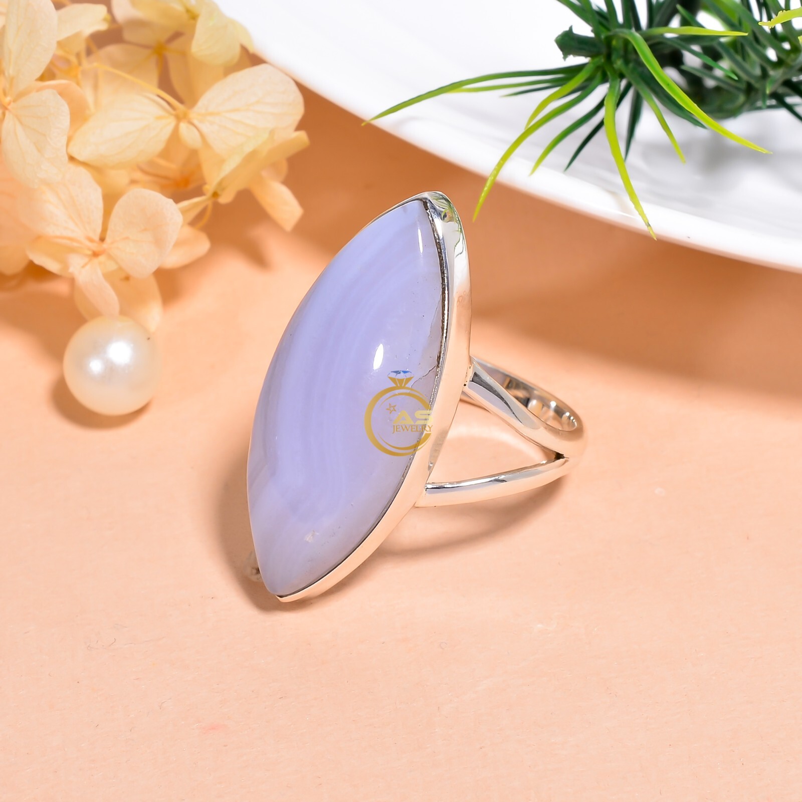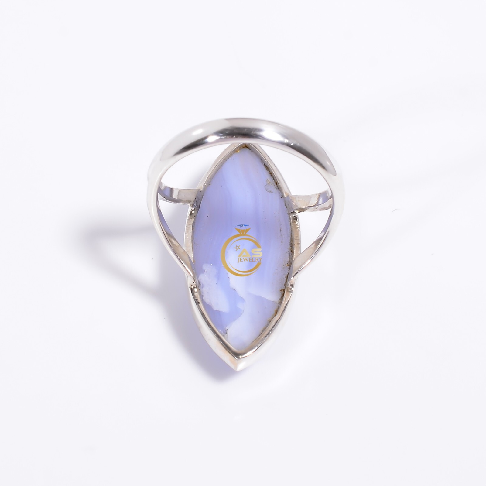 Blue Lace Agate Ring 925 Sterling Silver Statement Boho Rings Gift for Her