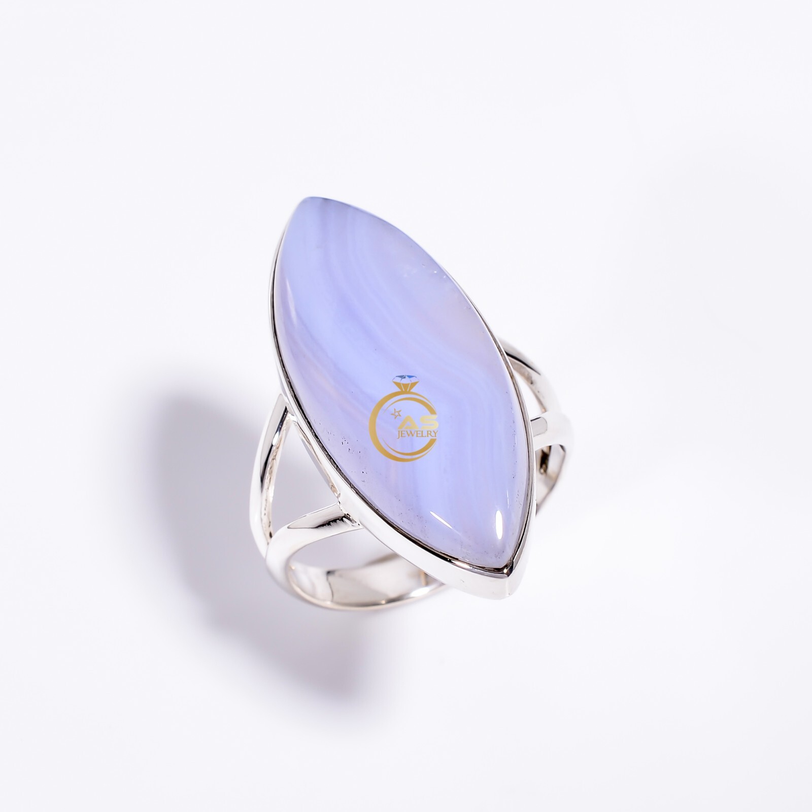 как выглядит Blue Lace Agate Ring 925 Sterling Silver Statement Boho Rings Gift for Her фото