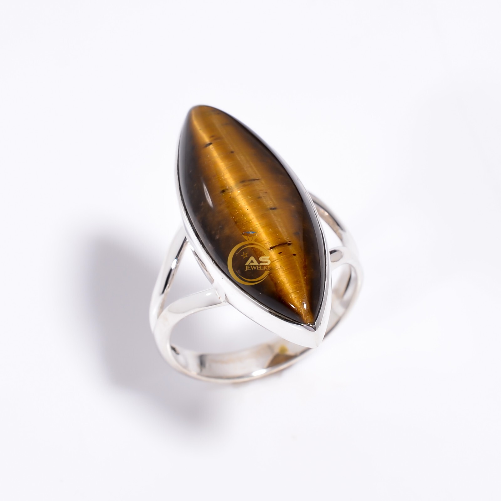 как выглядит Natural Tiger Eye Ring Brown Stone 925 Sterling Silver Boho Rings Jewelry фото