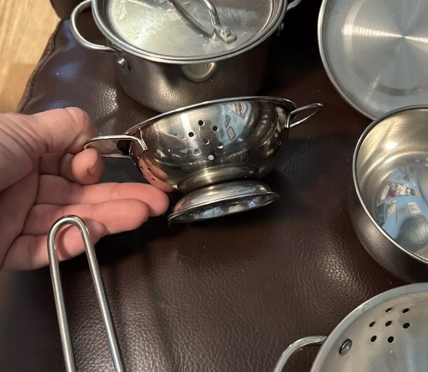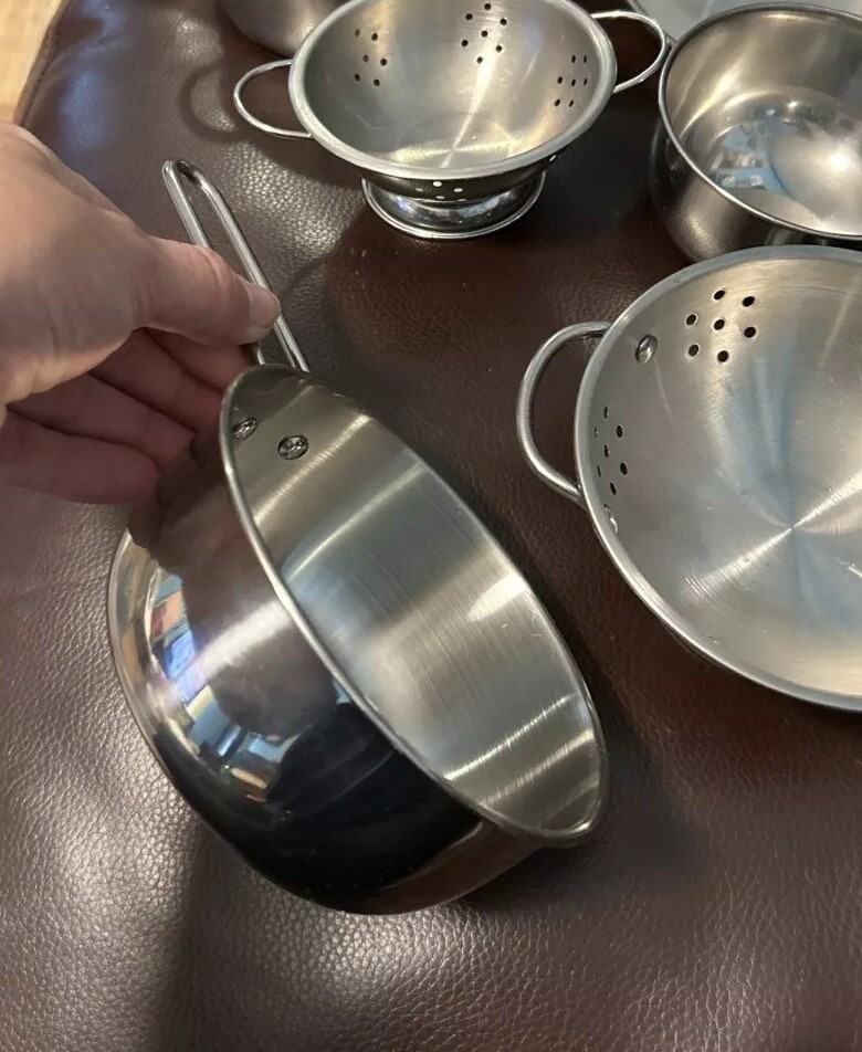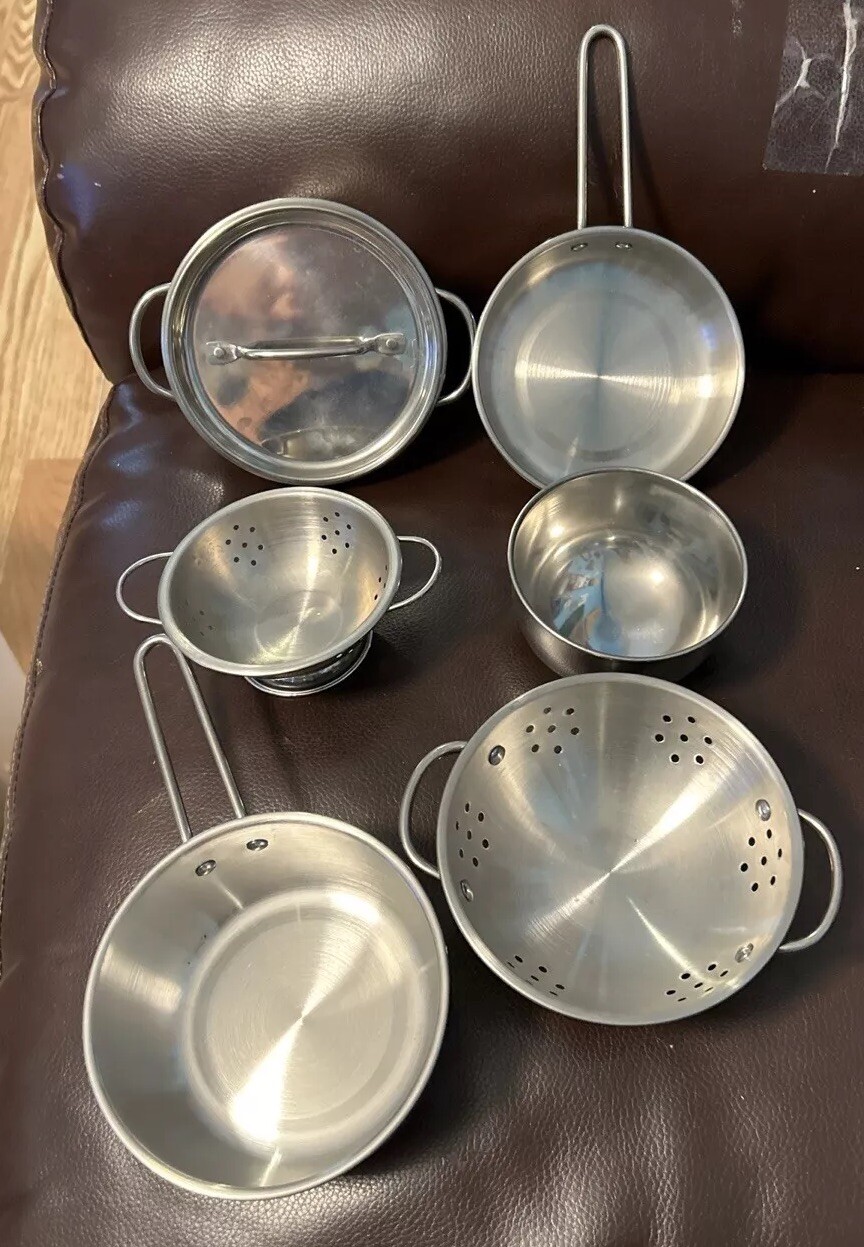 Melissa Doug Pots Pans Set 6 Piece Stainless Steel Pretend Play Cooking