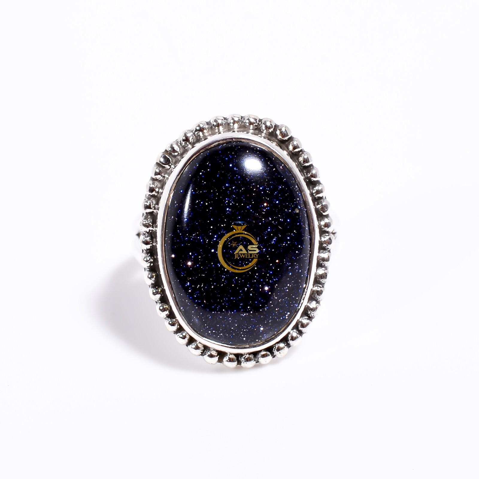Blue Sunstone Ring 925 Sterling Silver Statement Ring Jewelry Gift for Her