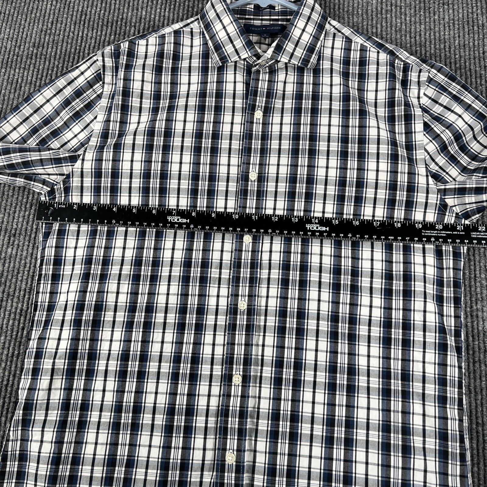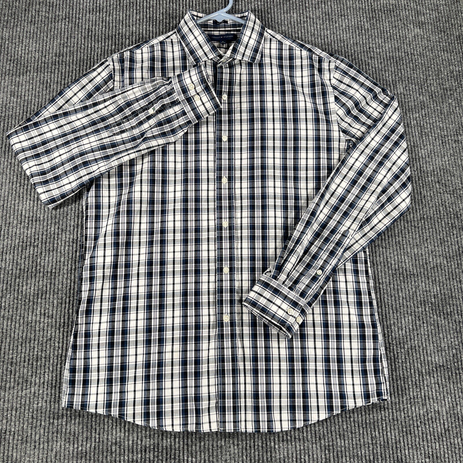 Tommy Hilfiger Shirt Mens 16 34-35 Slim Fit Blue Plaid Long Sleeve Button Up