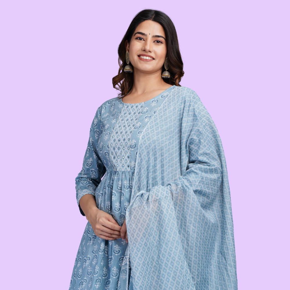 как выглядит Floral Printed Regular Pure Cotton Kurta with Pajamas With dupatta фото