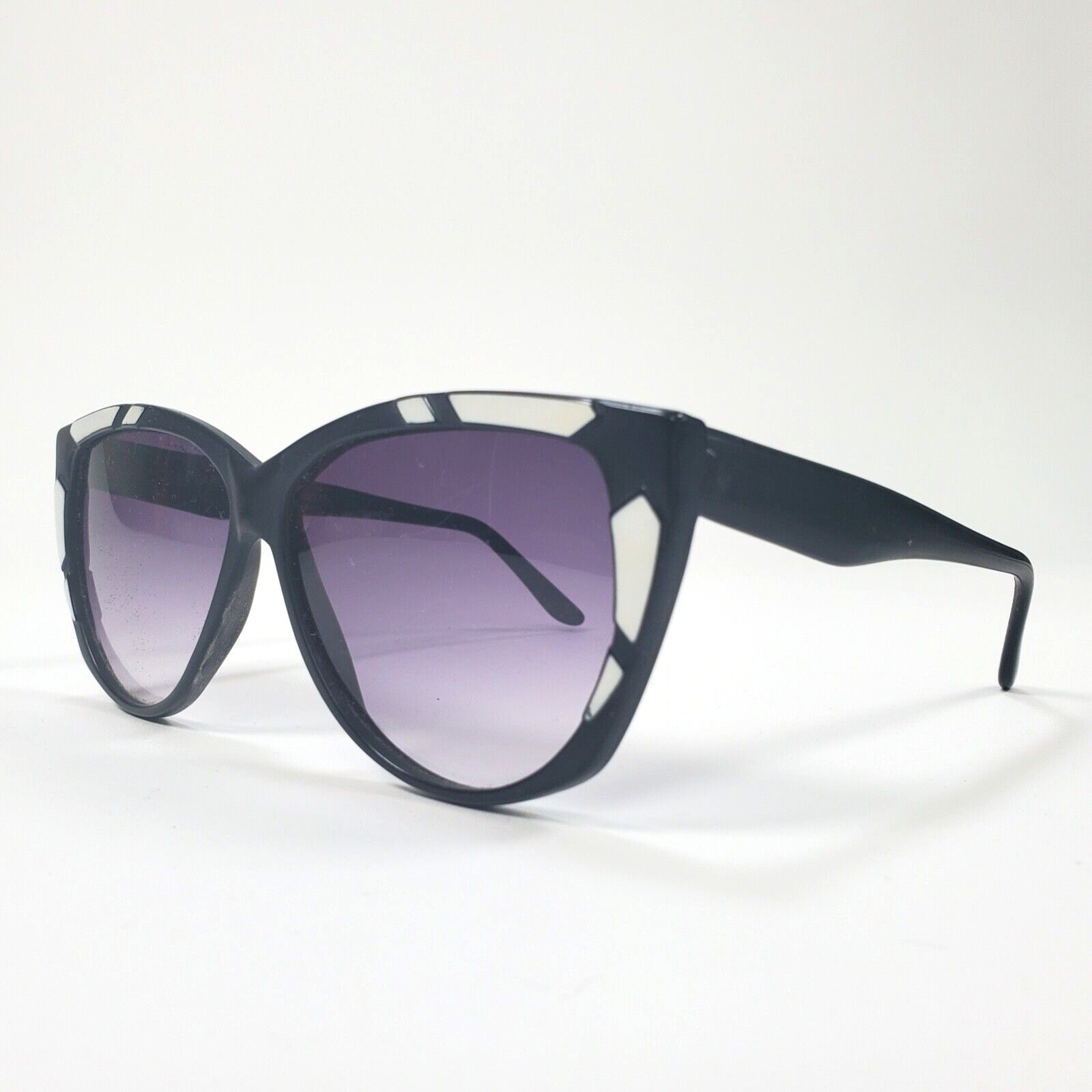 как выглядит Vintage Solargenics Nagel Black 1980s Cat-Eyed Sunglasses Frames Italy фото