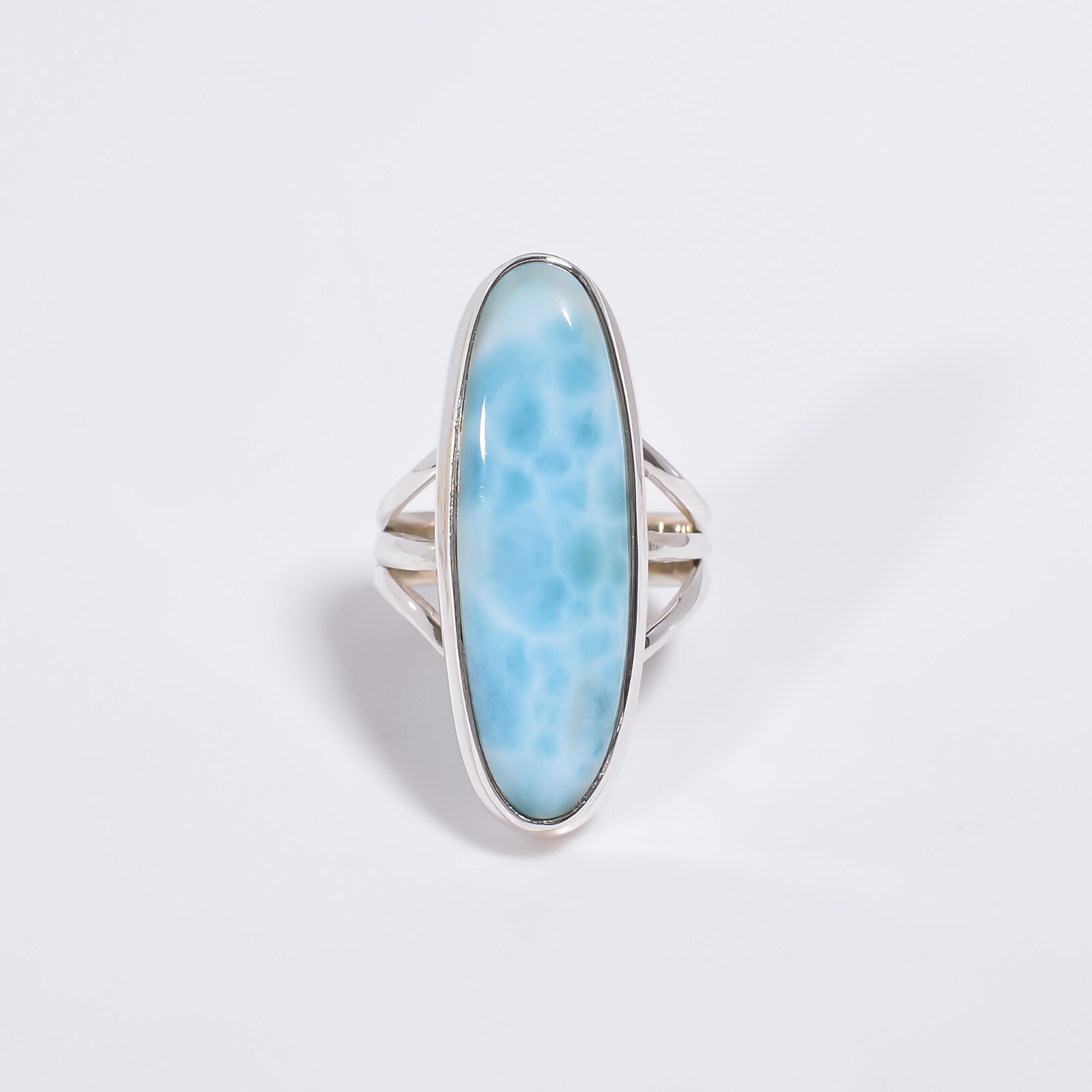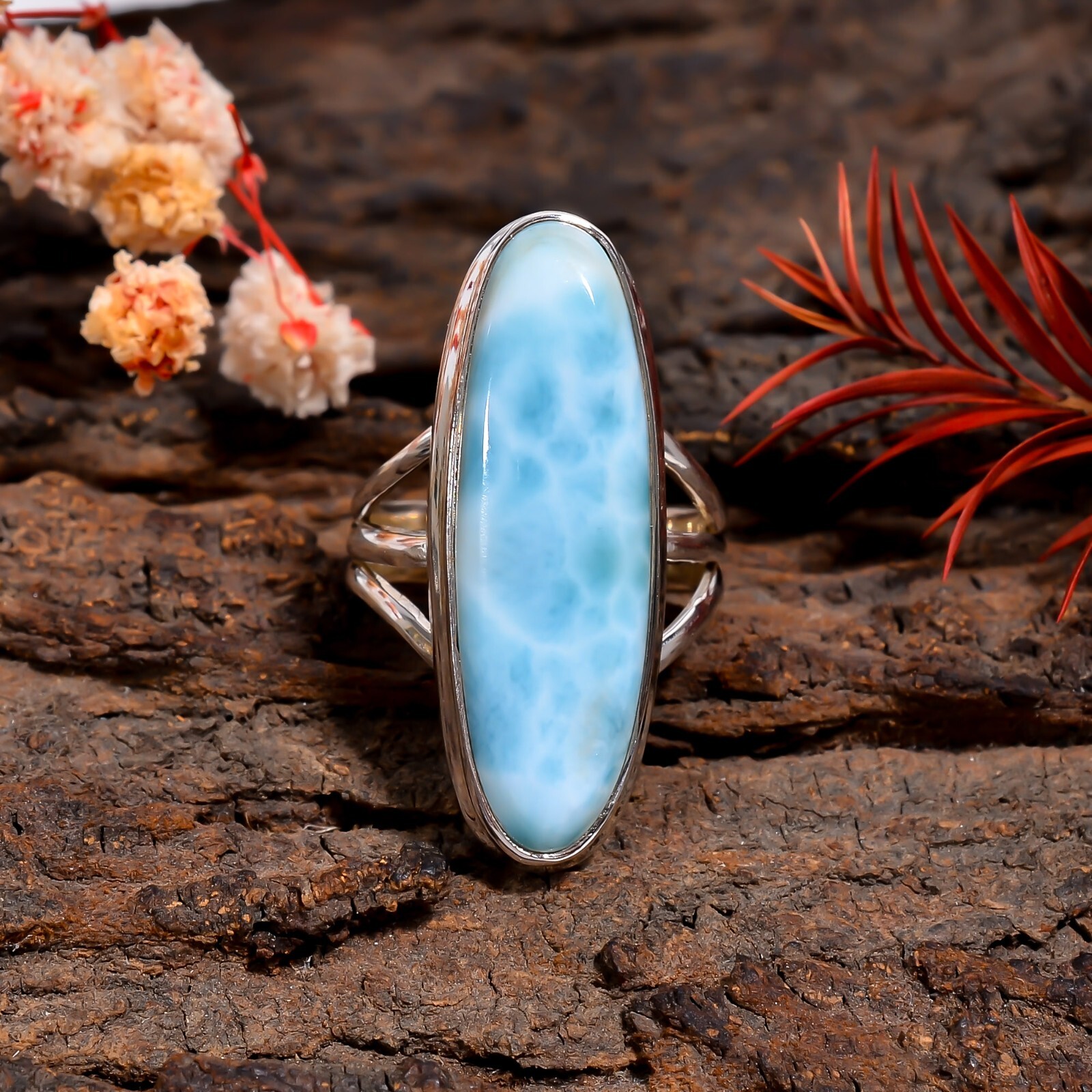 Natural Larimar Ring 925 Sterling Silver Statement Boho Rings Gift Jewelry Women