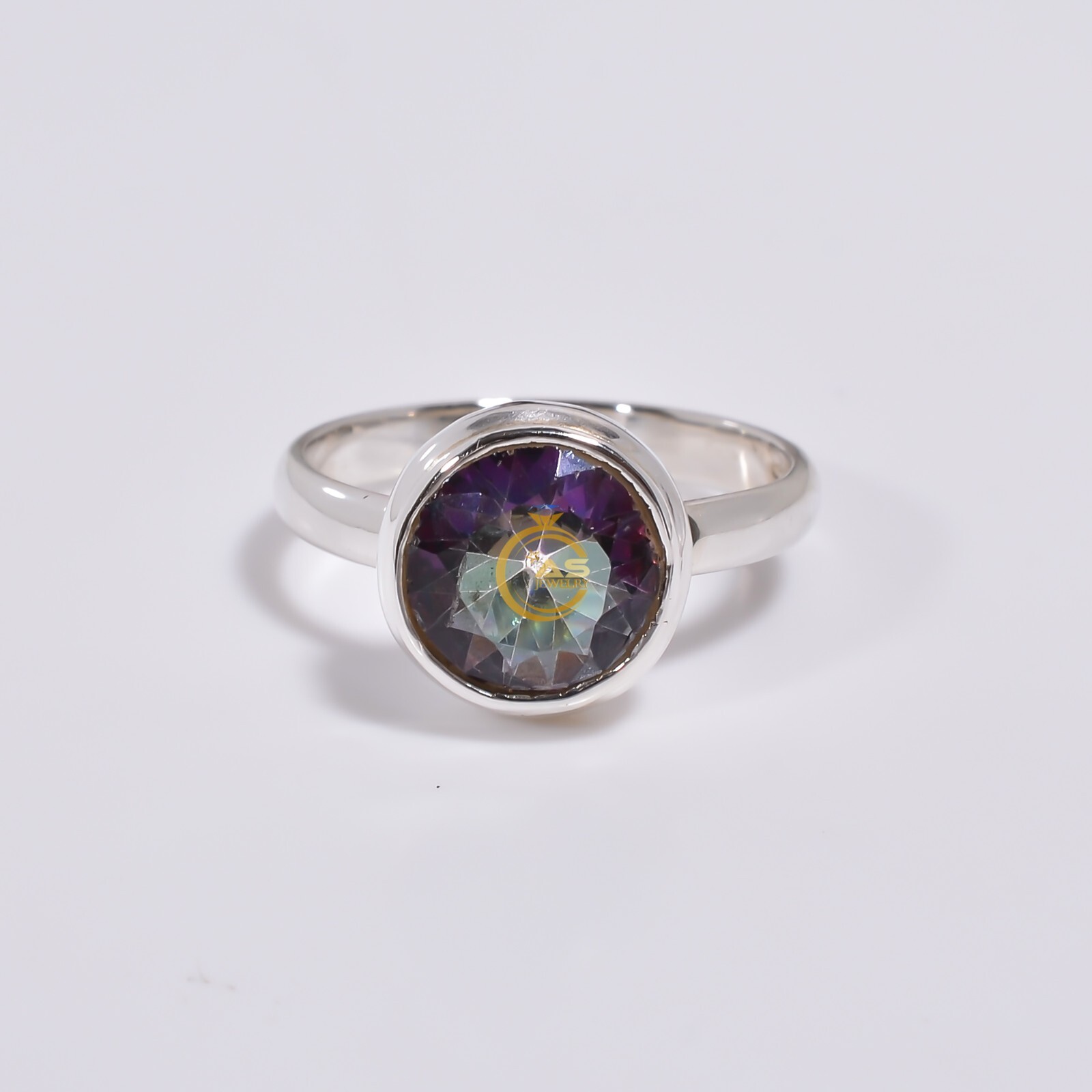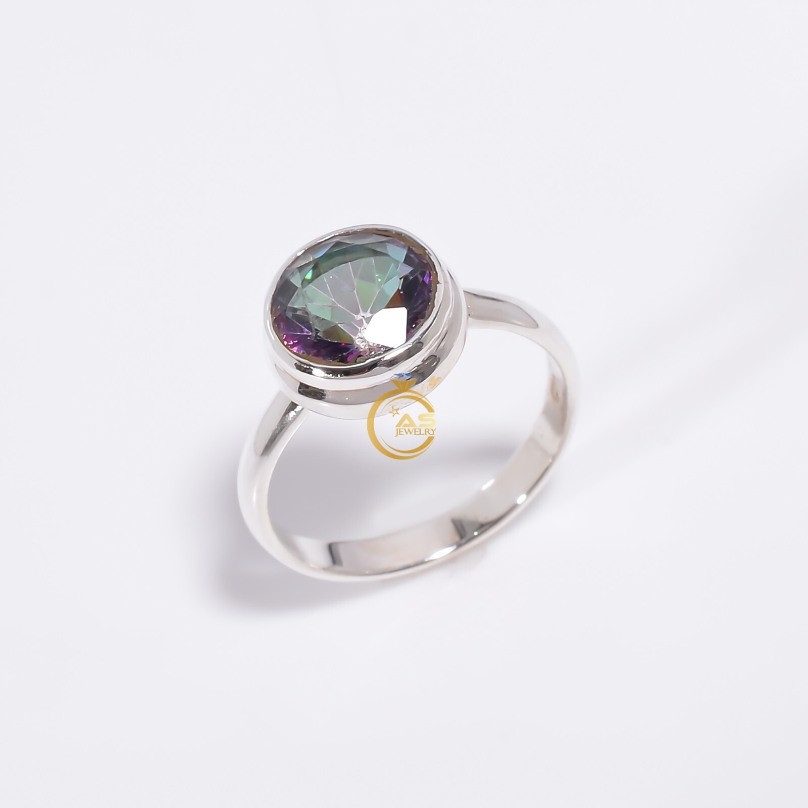 как выглядит Rainbow Mystic Topaz Ring 925 Sterling Silver Wedding Engagement Rings Jewelry фото