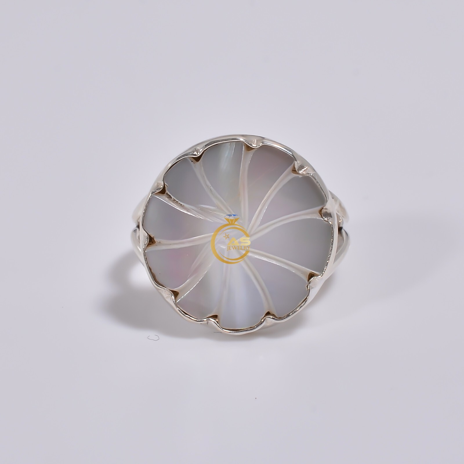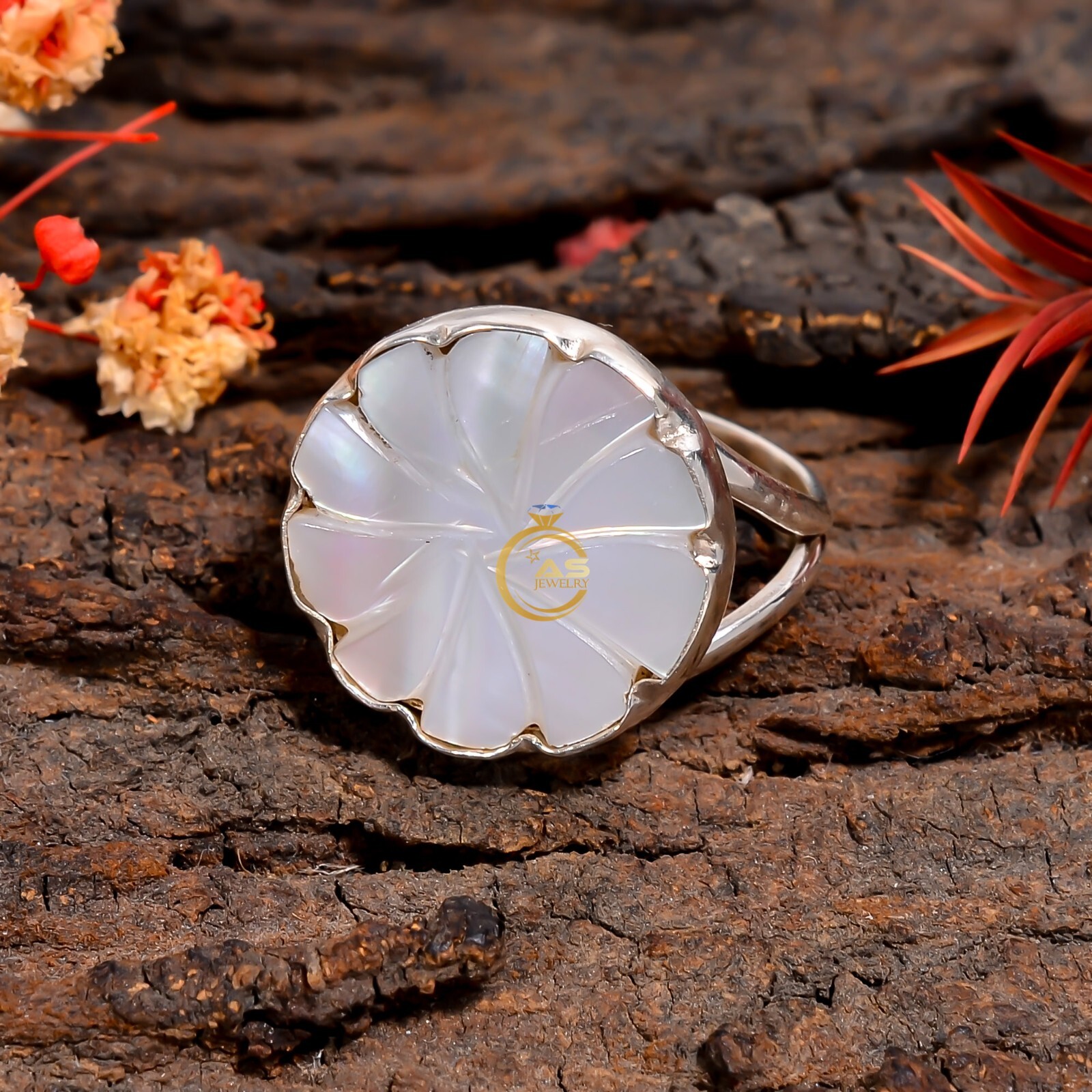 White Pearl Ring Flower Design Stone 925 Sterling Silver Rings Gift Jewelry