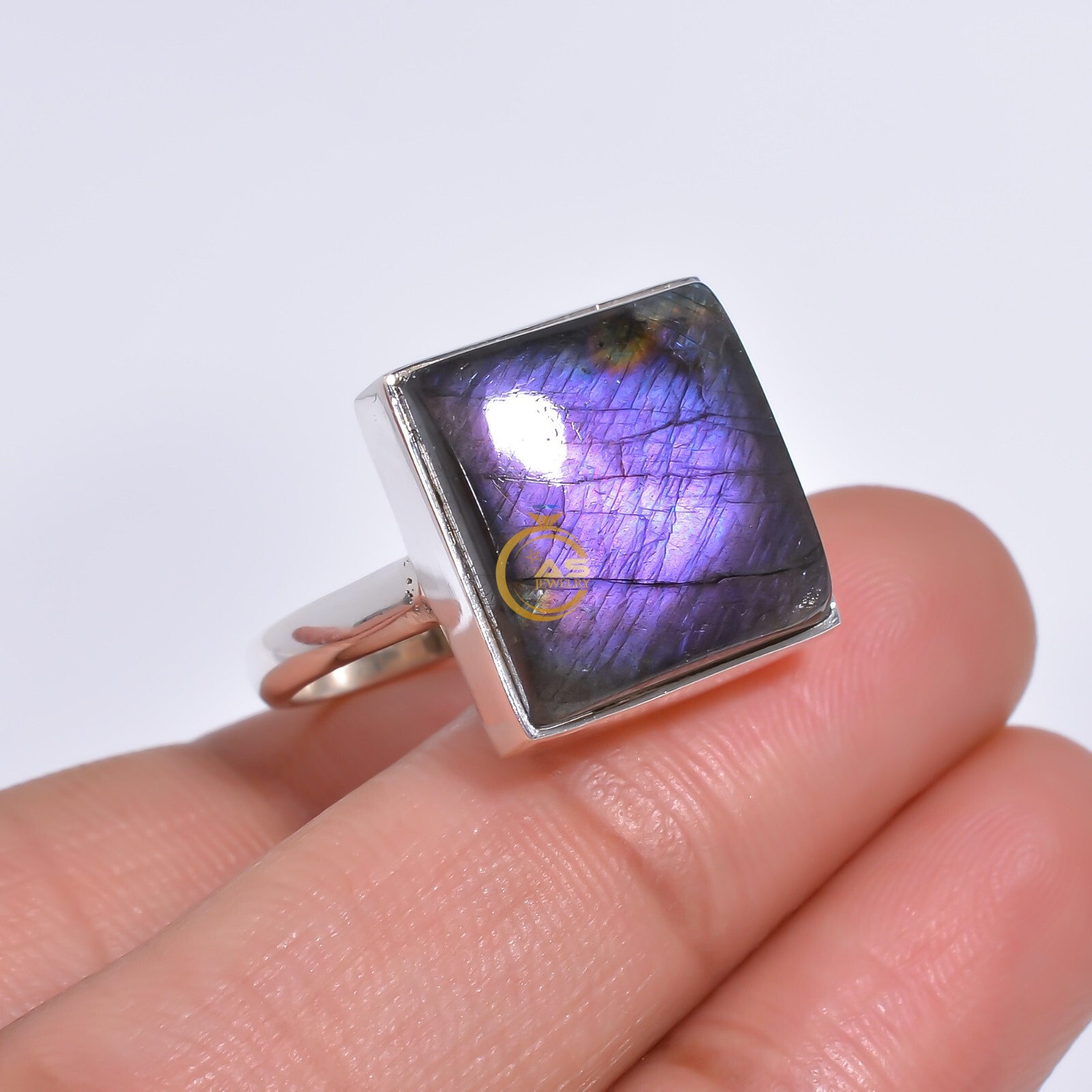 Natural Purple Labradorite Ring Purple Stone 925 Sterling Silver Boho Rings