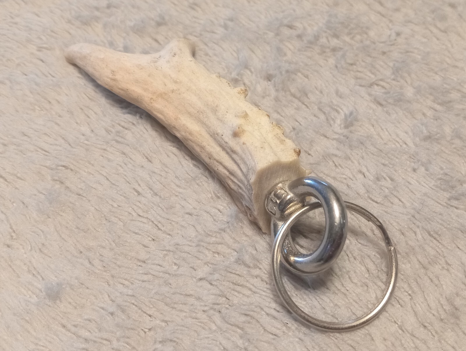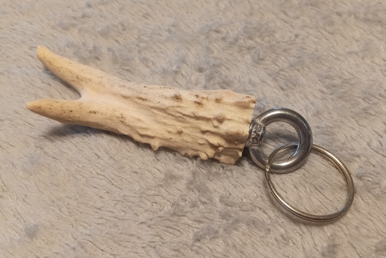 Handmade Deer Antler KeyChain Double Point Chrome Hardware Deer Hunter Gift.