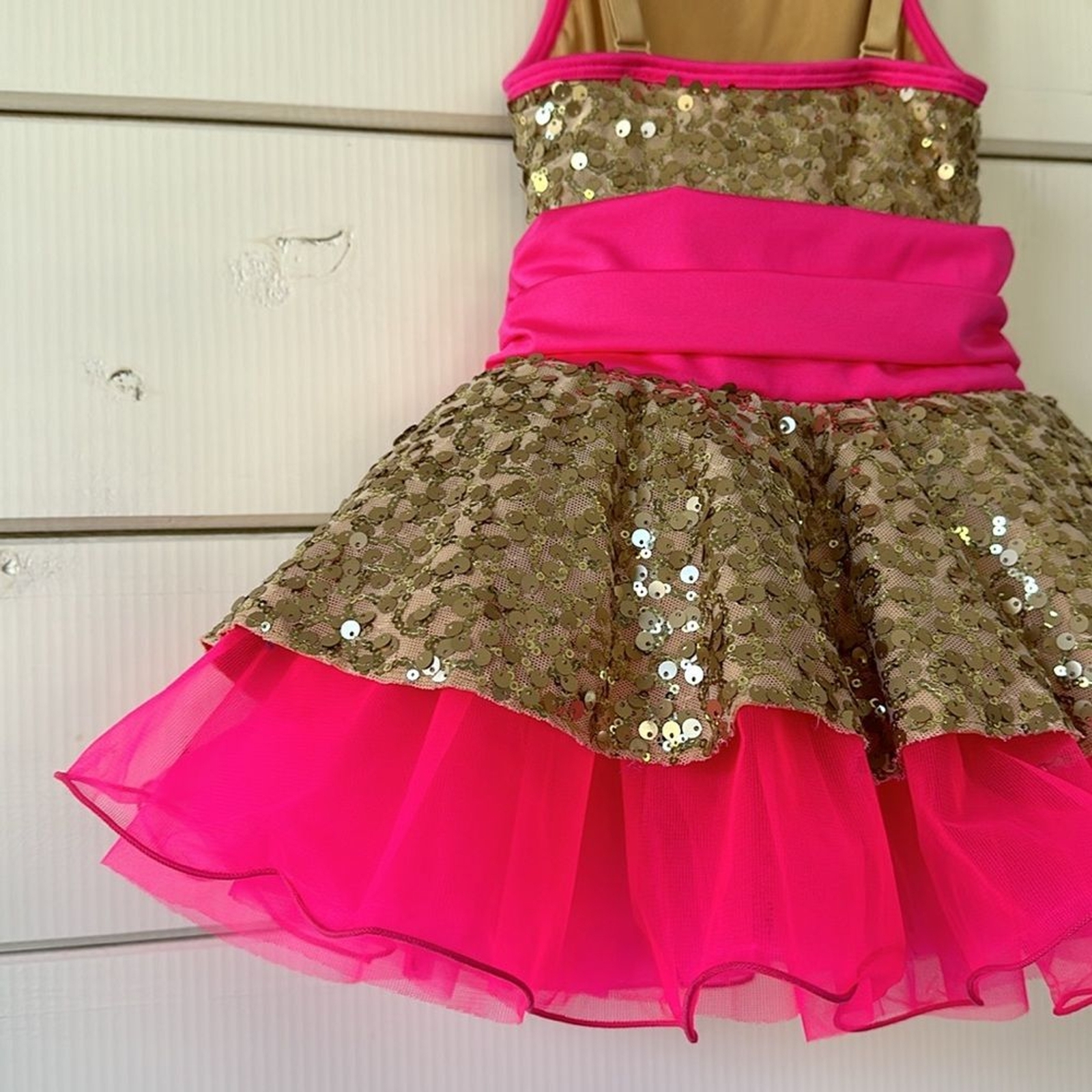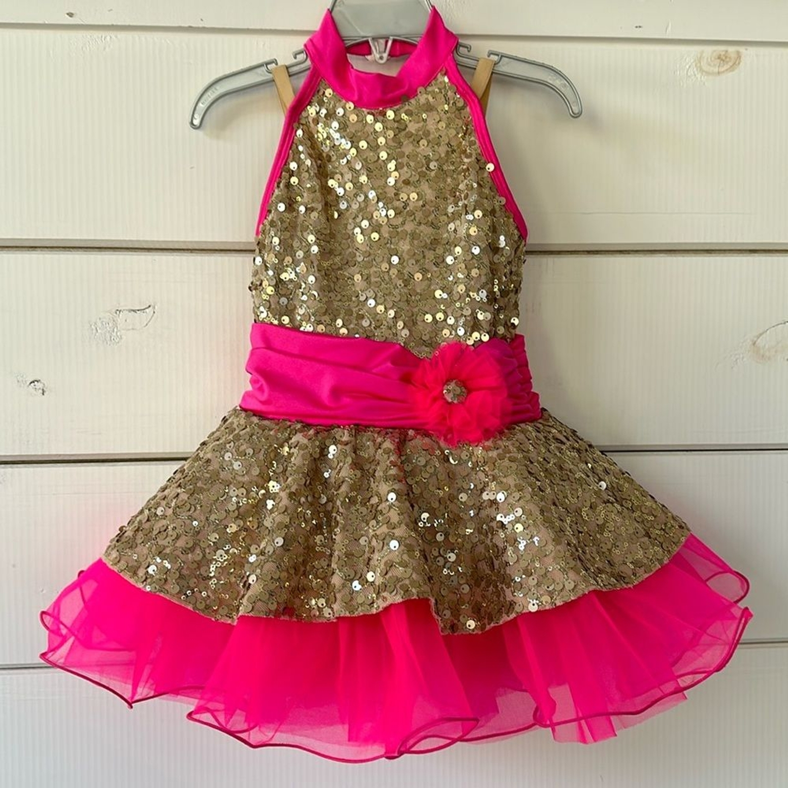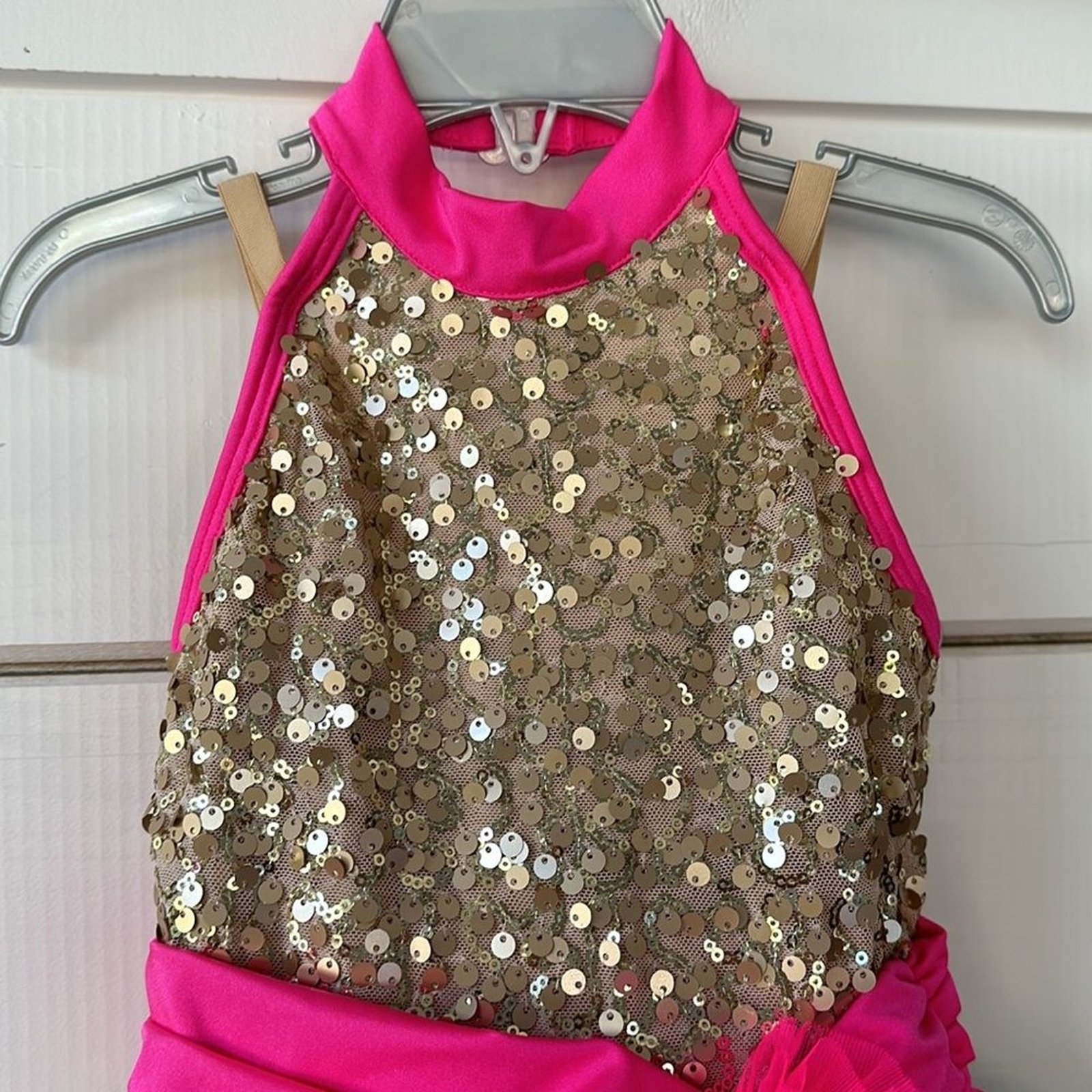 Revolution Costume Collection Hot Pink Sequin Gold Dancewear SC Small Child