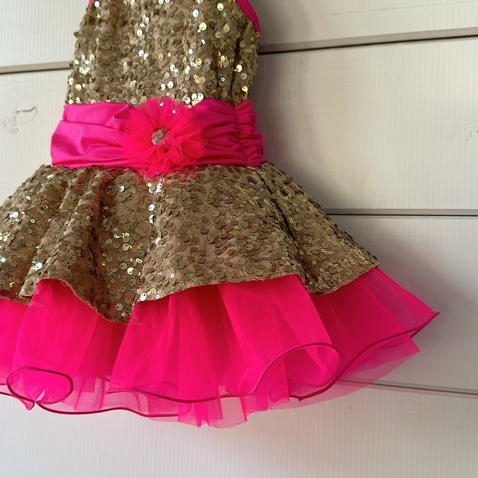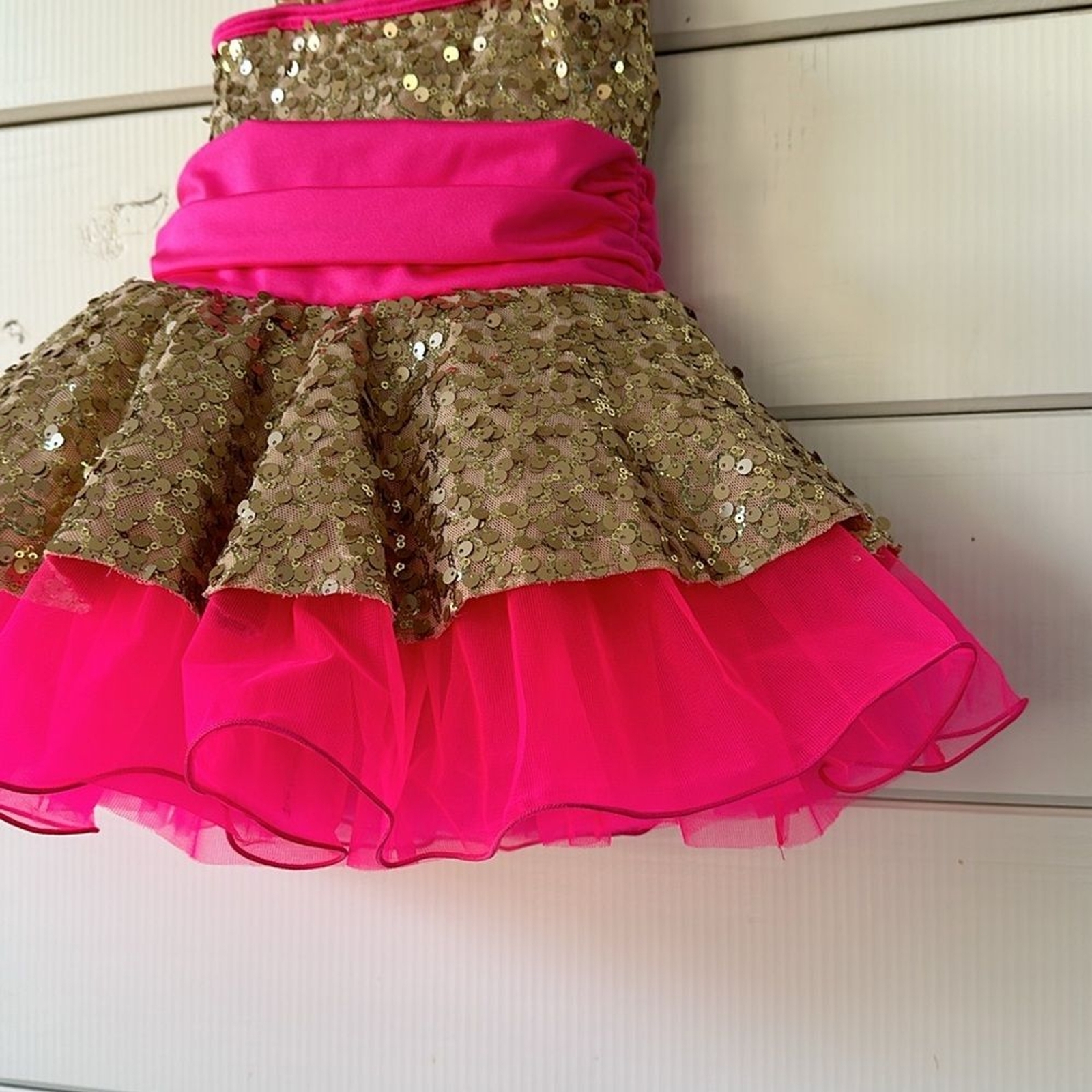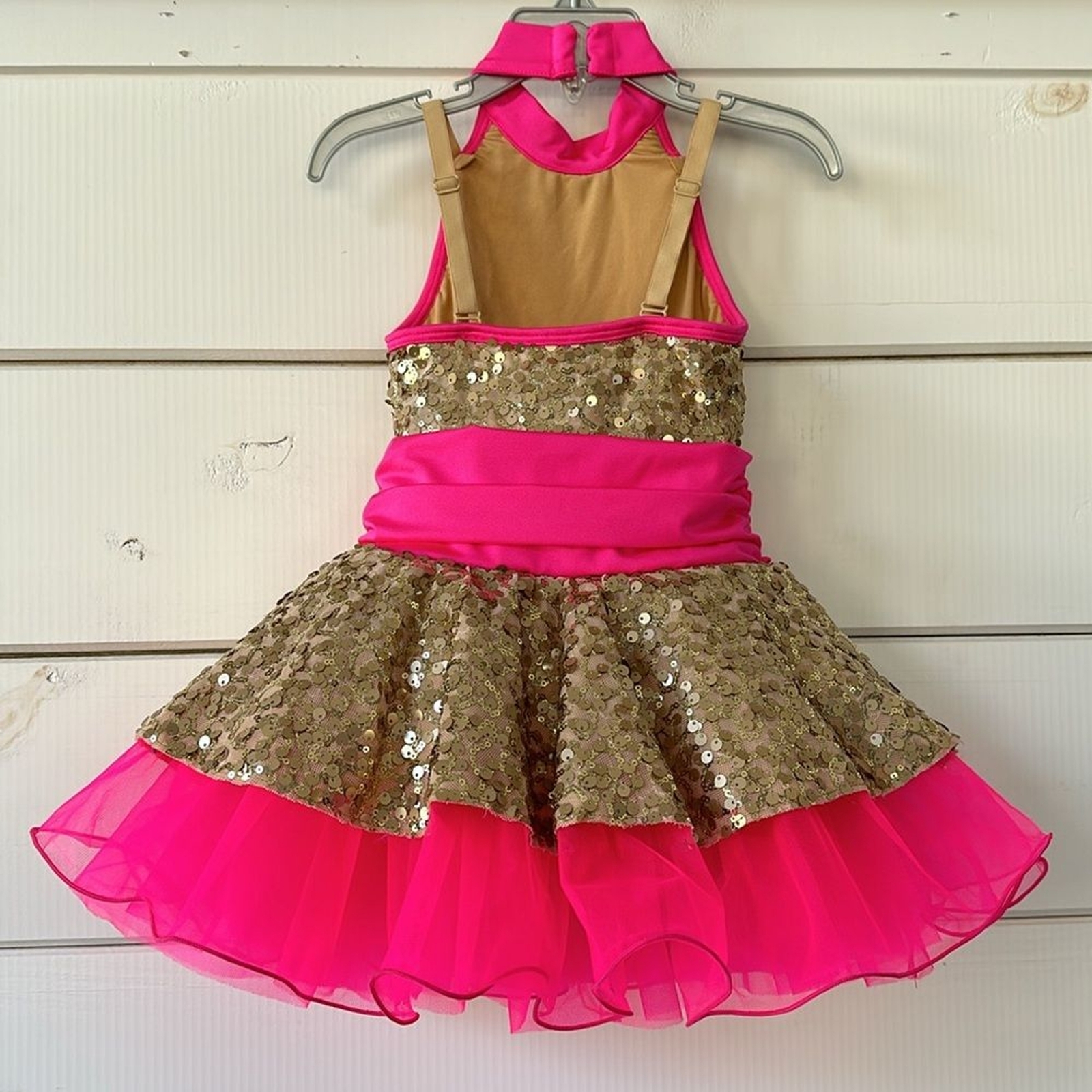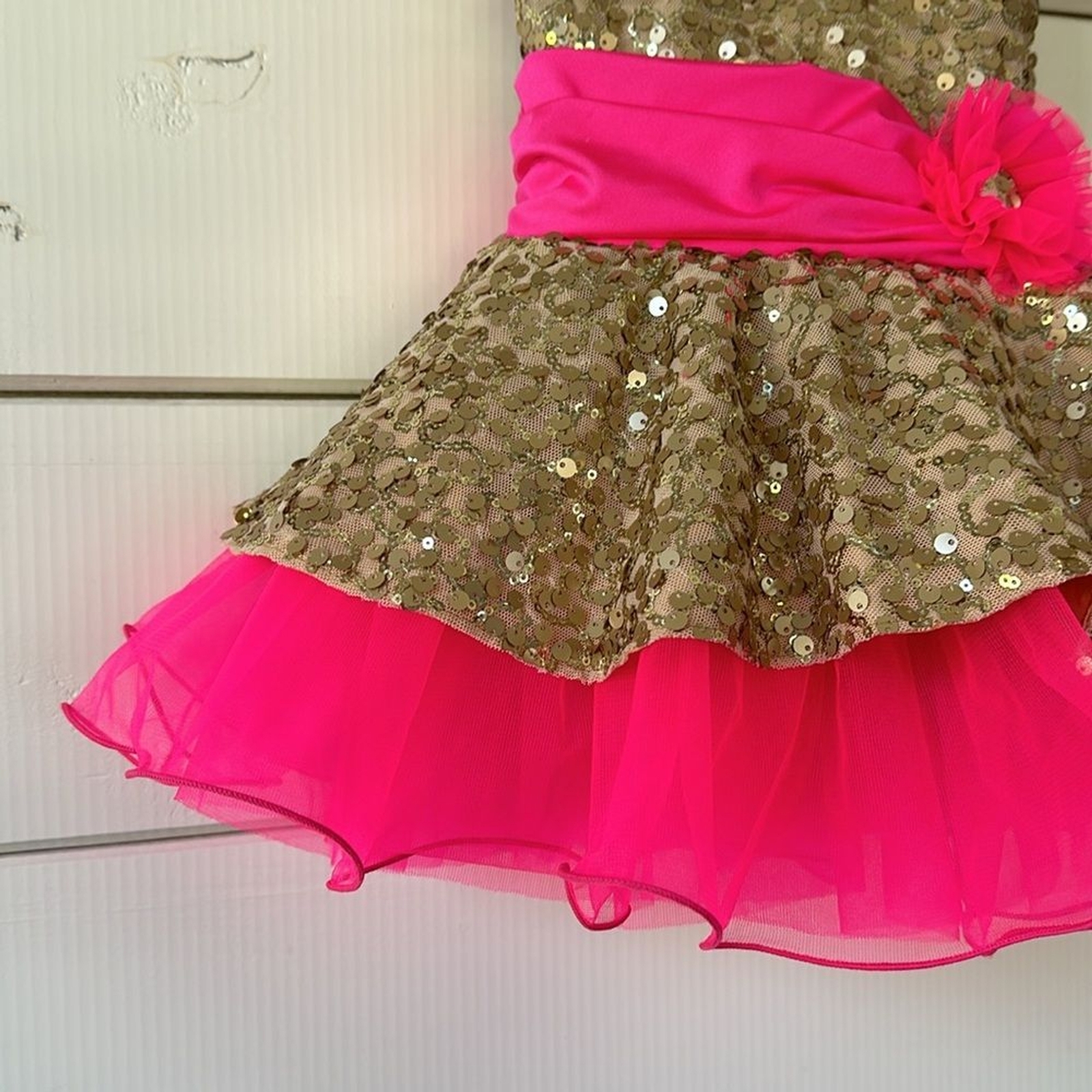 Revolution Costume Collection Hot Pink Sequin Gold Dancewear SC Small Child