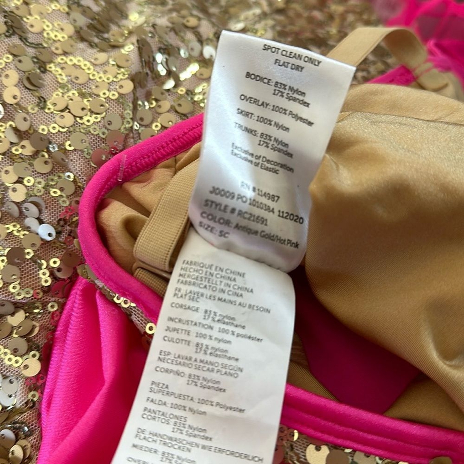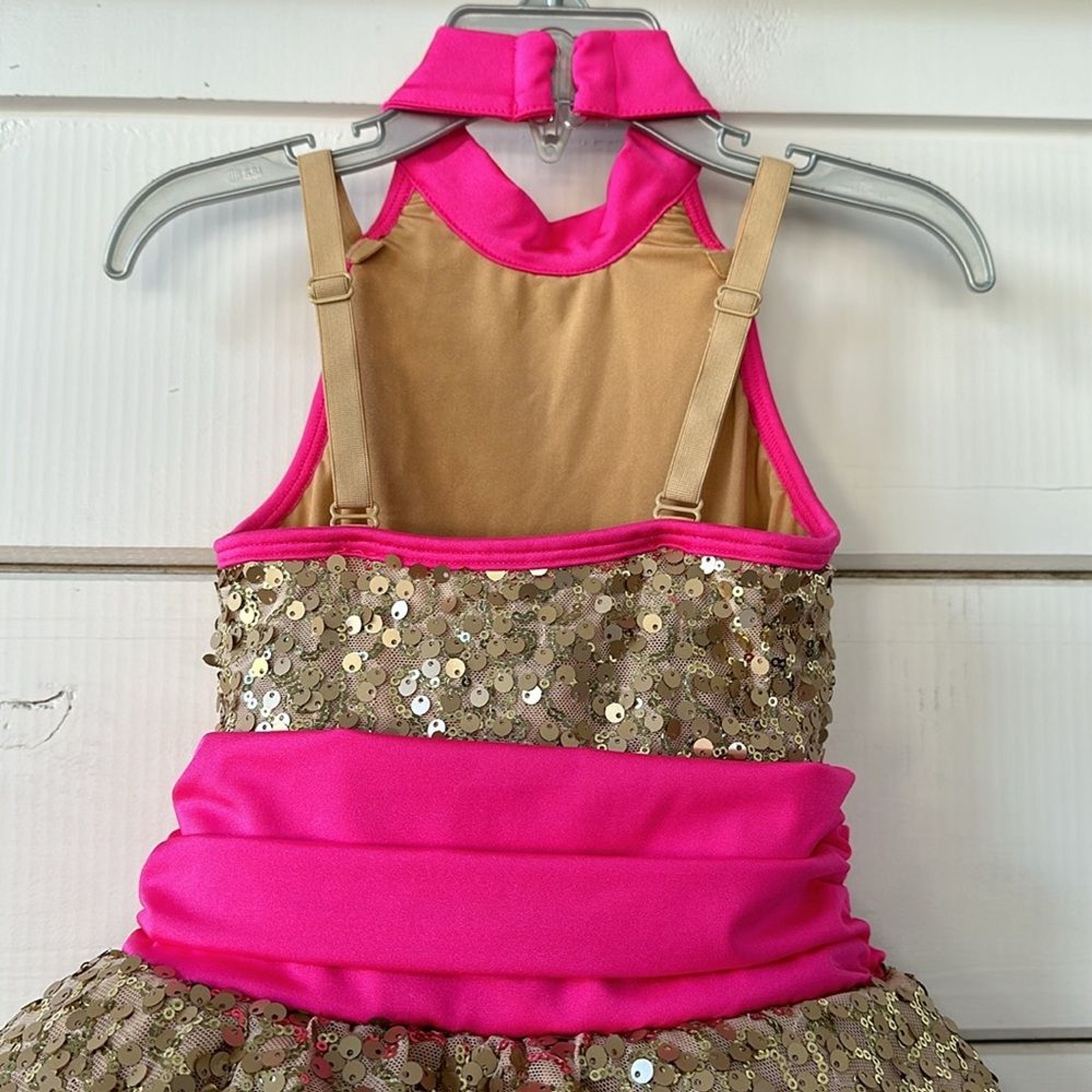 как выглядит Revolution Costume Collection Hot Pink Sequin Gold Dancewear SC Small Child фото