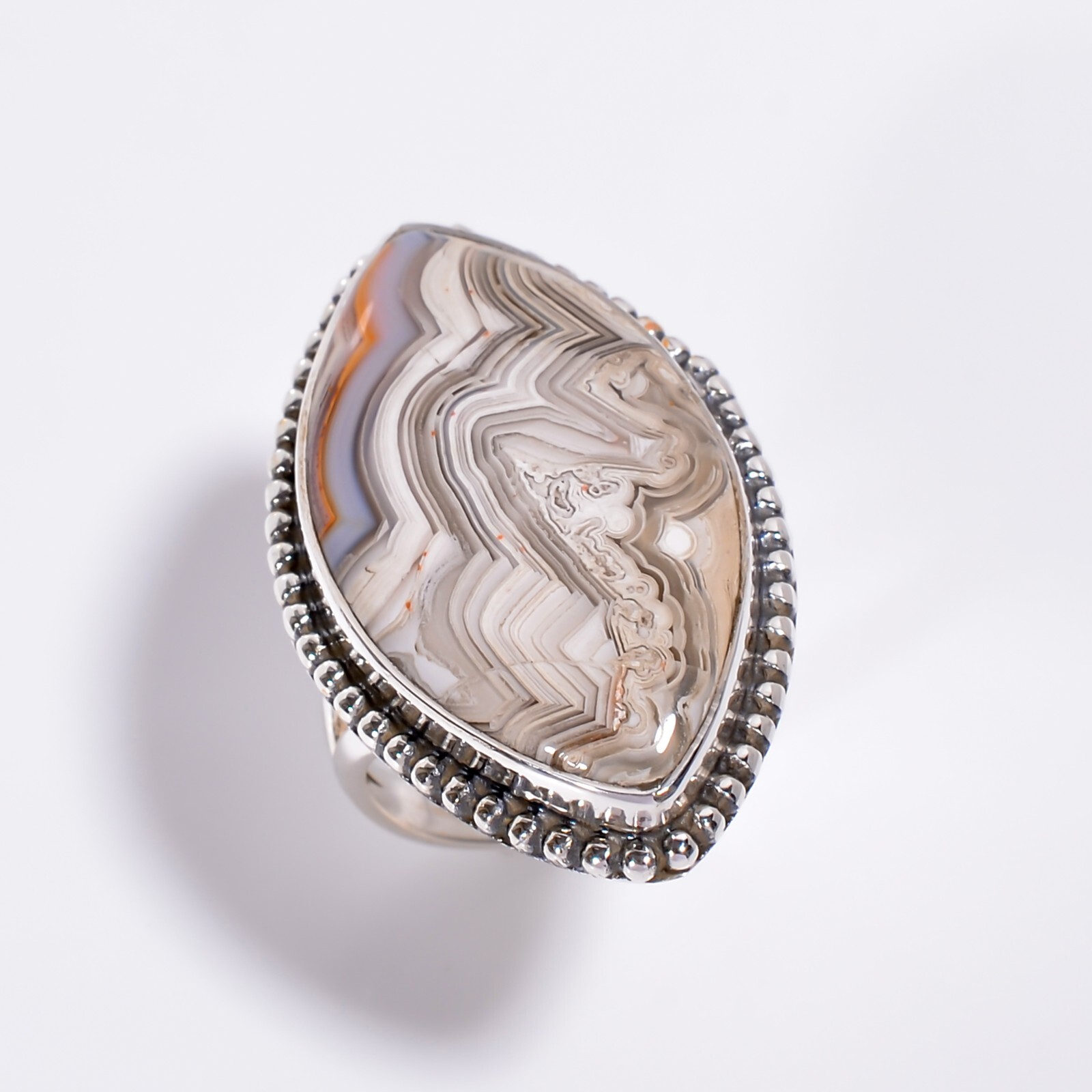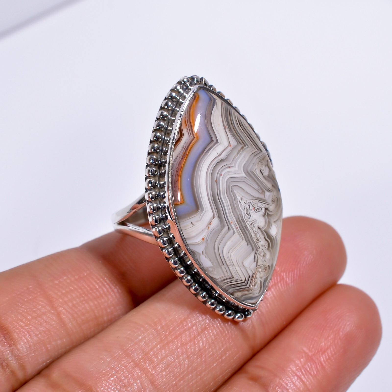 Natural Crazy Lace Agate Ring 925 Sterling Silver Statement Rings Women Jewelry