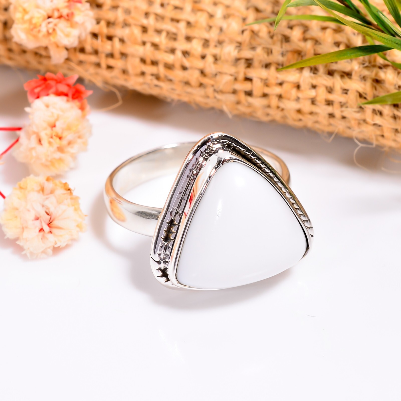 White Coral Ring White Stone 925 Sterling Silver Boho Rings Gift for Her