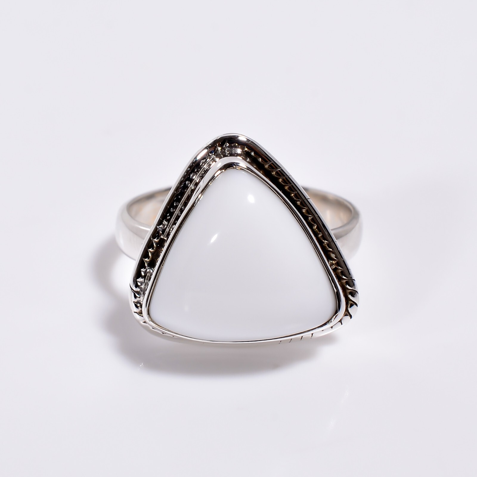 как выглядит White Coral Ring White Stone 925 Sterling Silver Boho Rings Gift for Her фото
