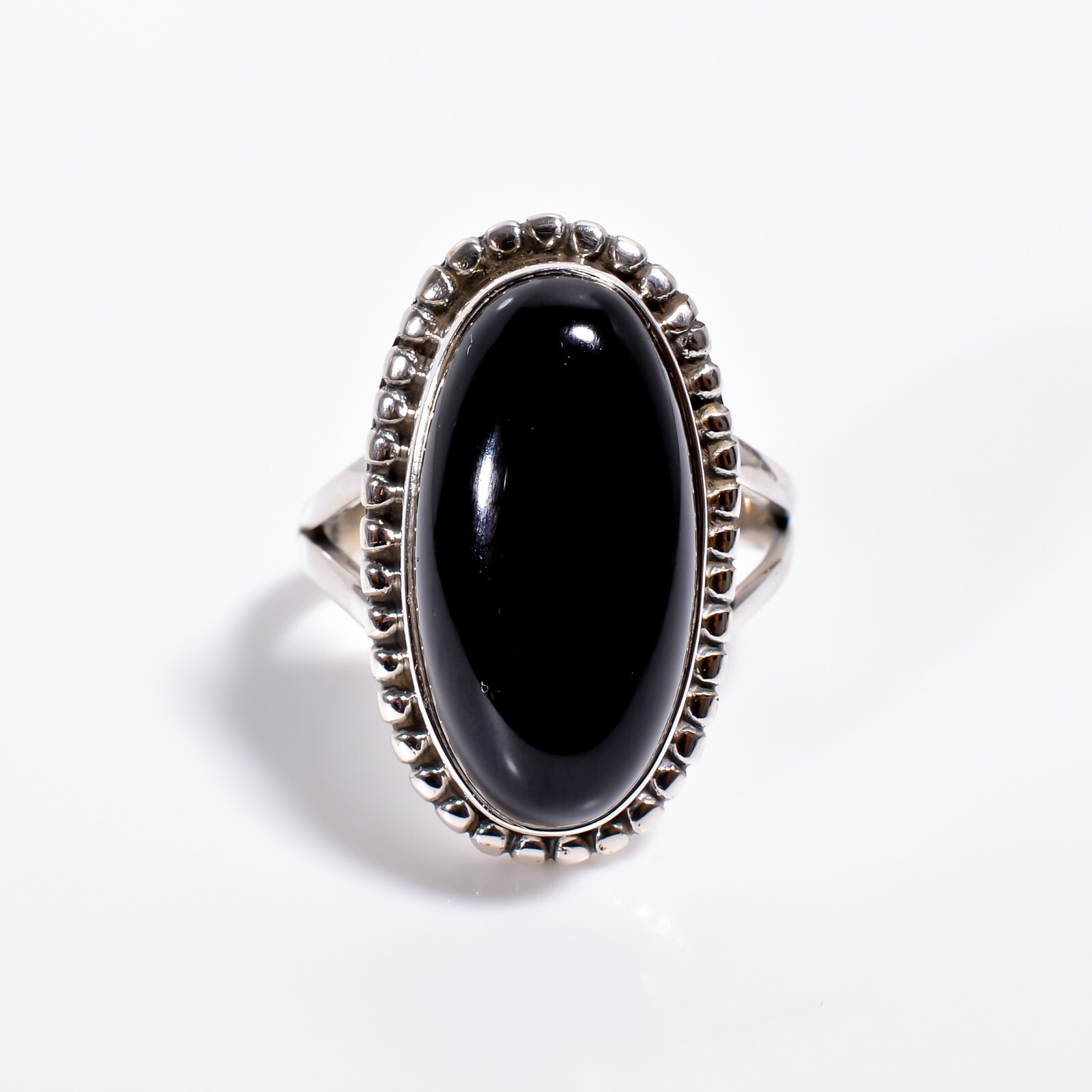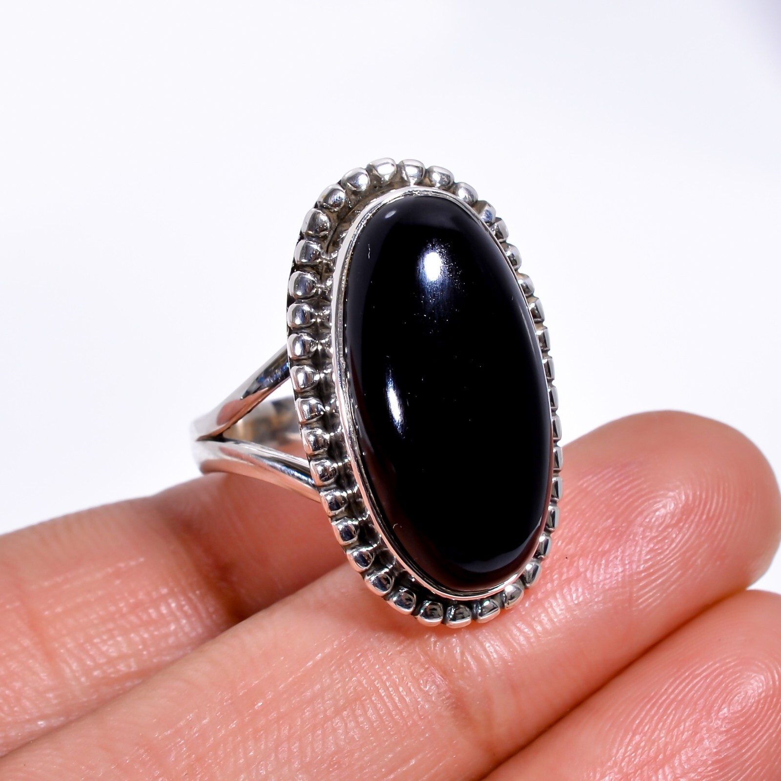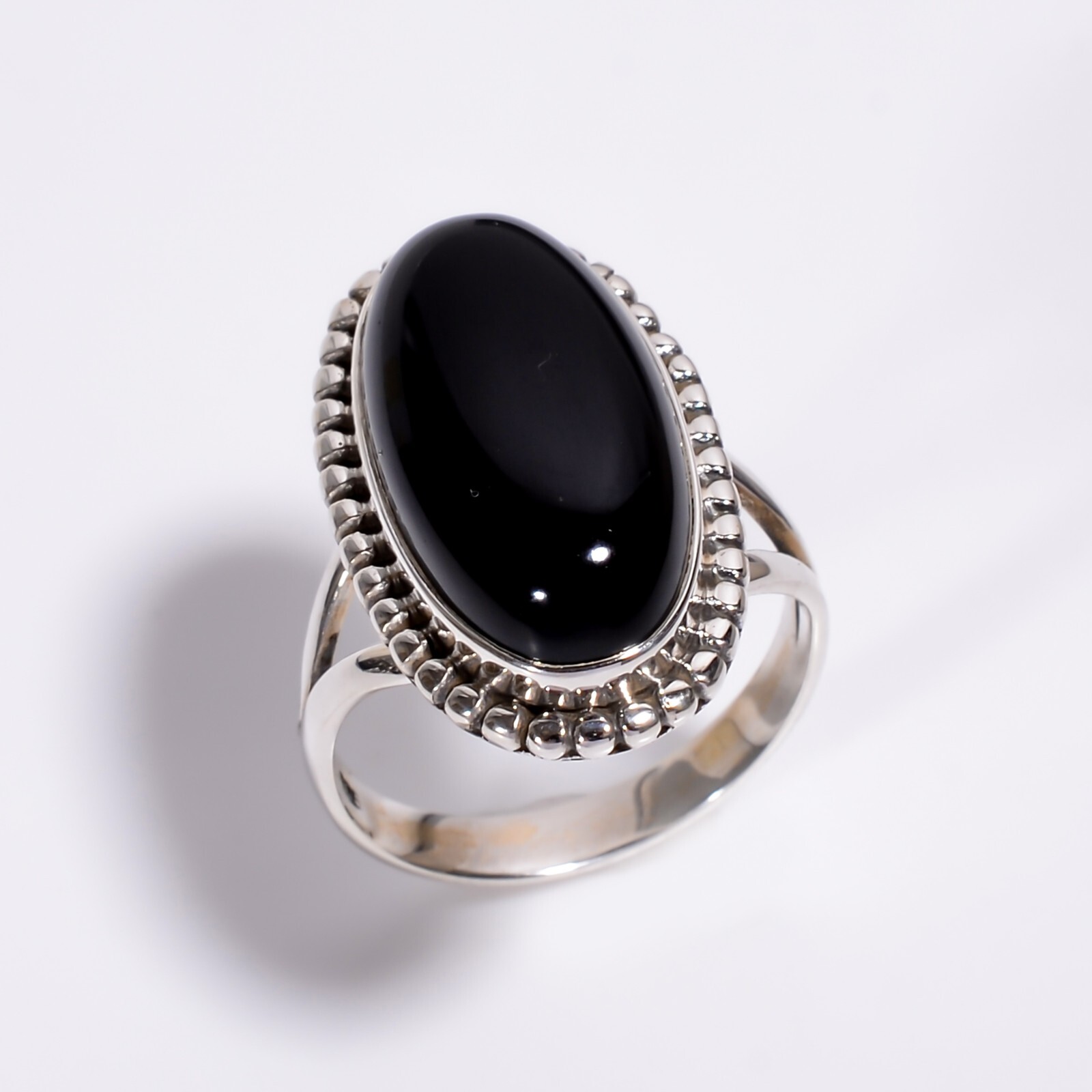 Natural Black Onyx Gemstone Ring 925 Sterling Silver Statement Ring Gift for Her