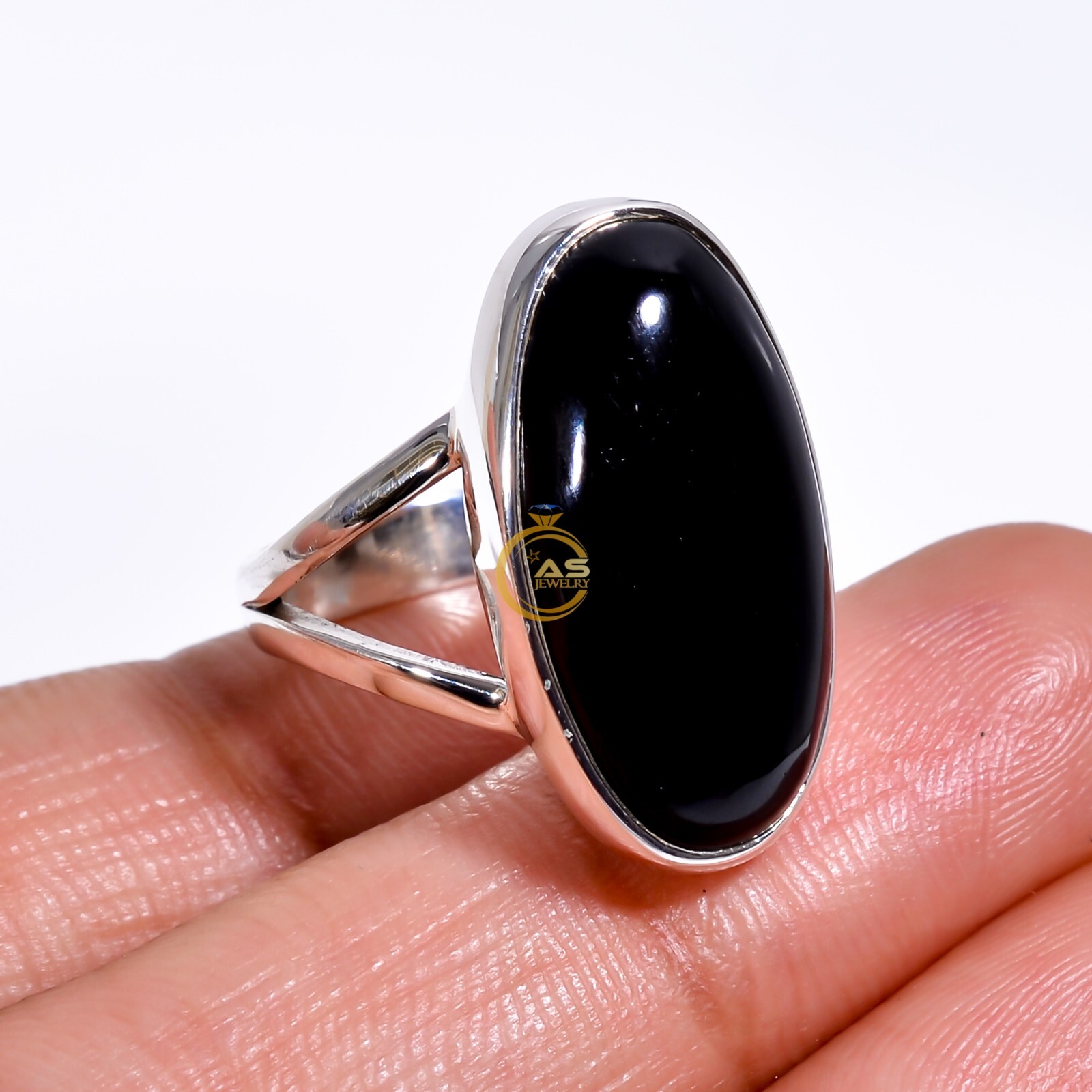 как выглядит Natural Black Onyx Ring Black Stone 925 Sterling Silver Boho Rings Gift for Her фото