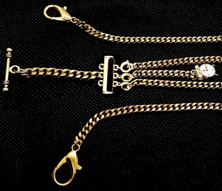 Gold Plated V Strong Pocket Watch Albert Double Chain With Slide Tube Clasps