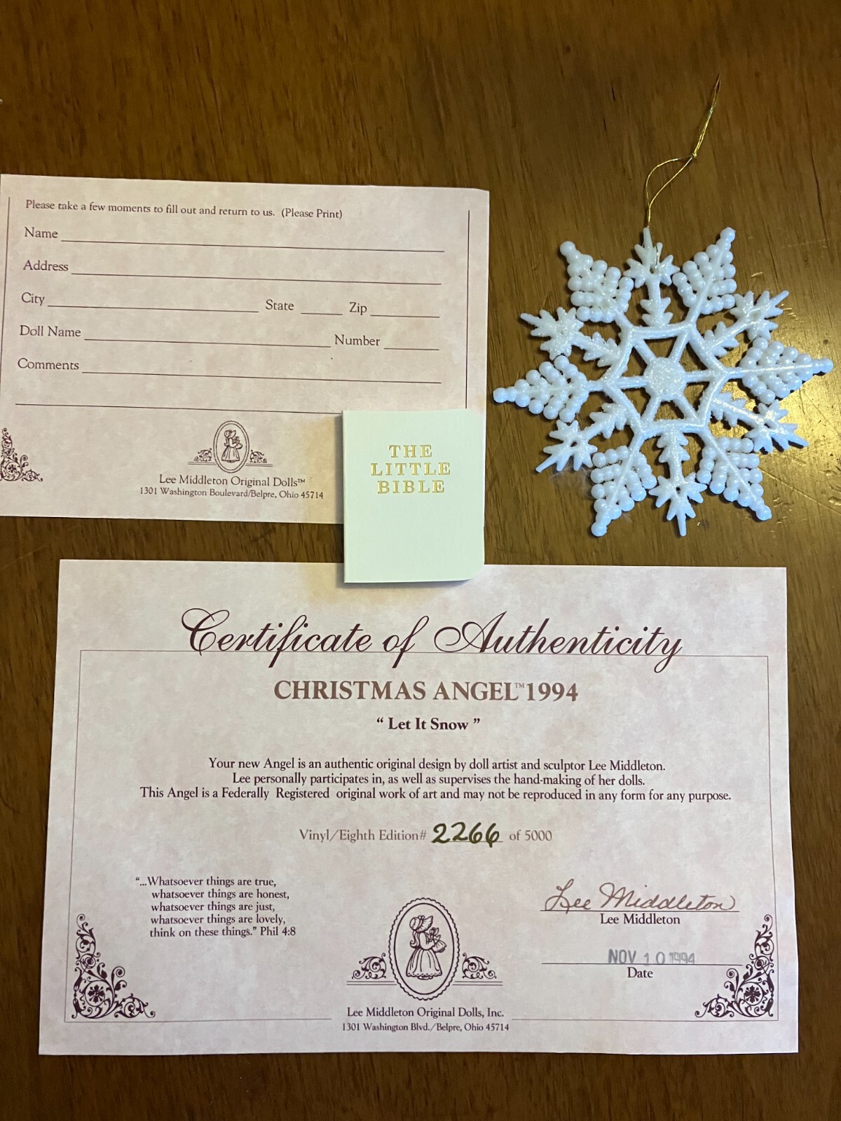 Lee Middleton's 1994 Collector Edition Christmas Angel, Let It Snow