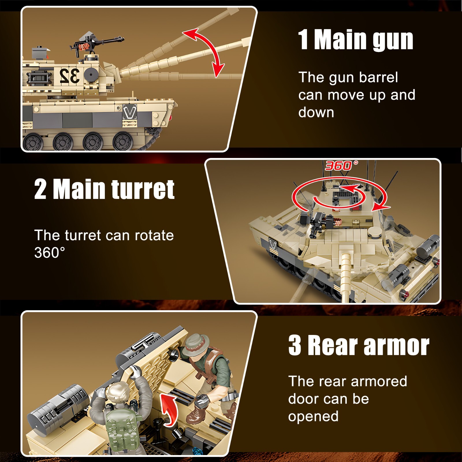 M1A2 Tank Building Block Set, WW2 Military Abrams Toy for Boy