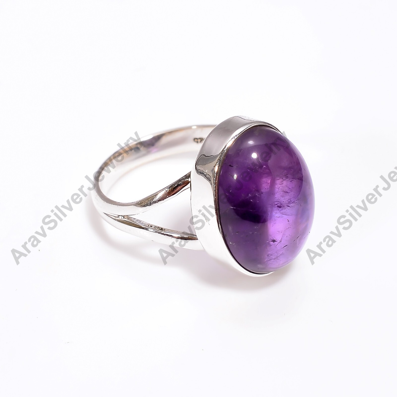 Natural Purple Amethyst Stone Ring 925 Sterling Silver Ring Jewelry Gift for Her
