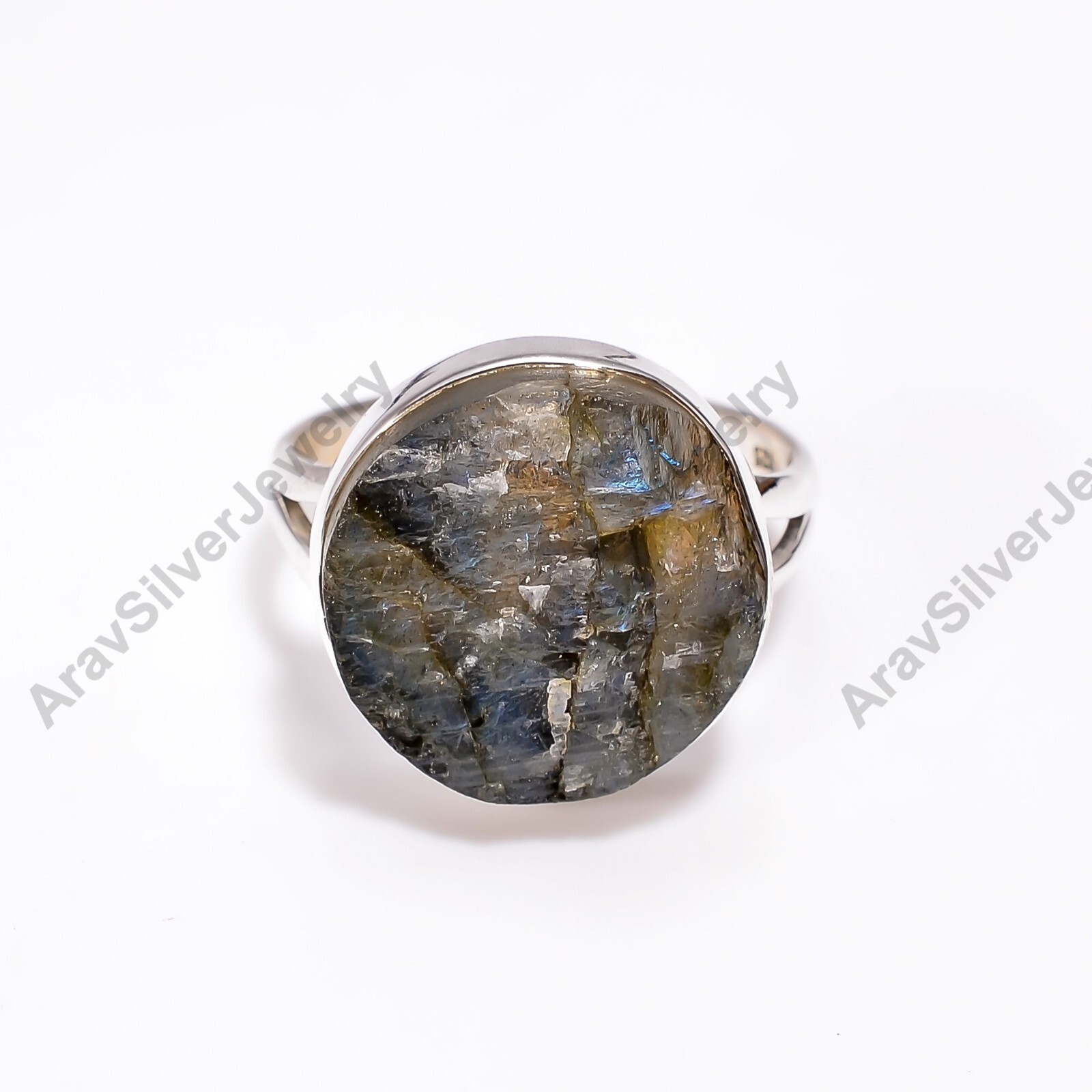 Natural Raw Labradorite Ring Blue Stone 925 Sterling Silver Statement Boho Rings