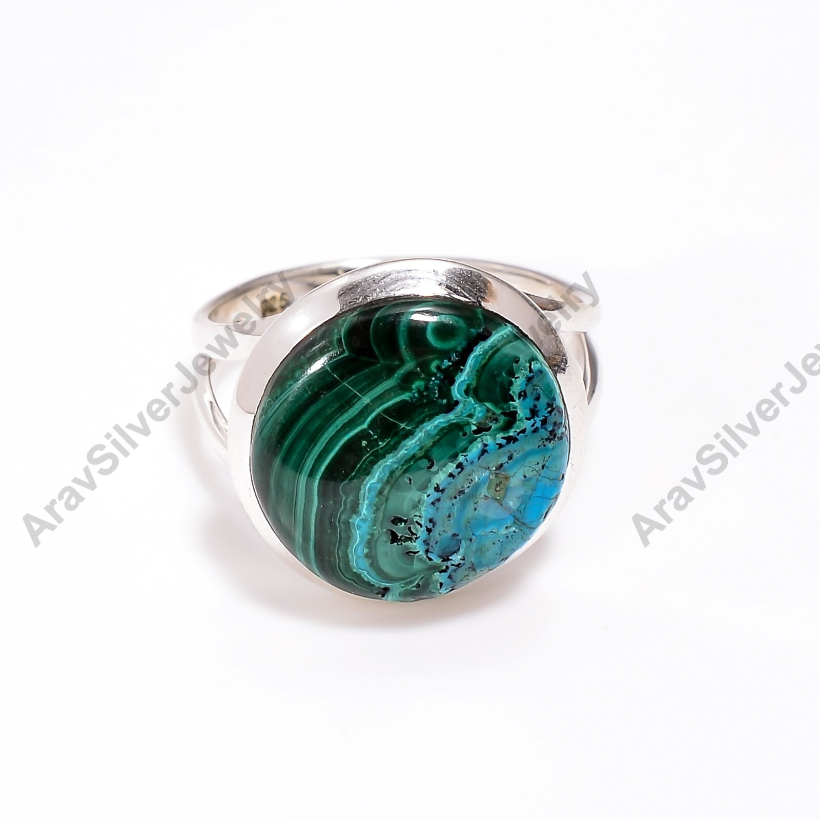 Natural Azurite Malachite Gemstone Ring 925 Sterling Silver Rings Gift for Her
