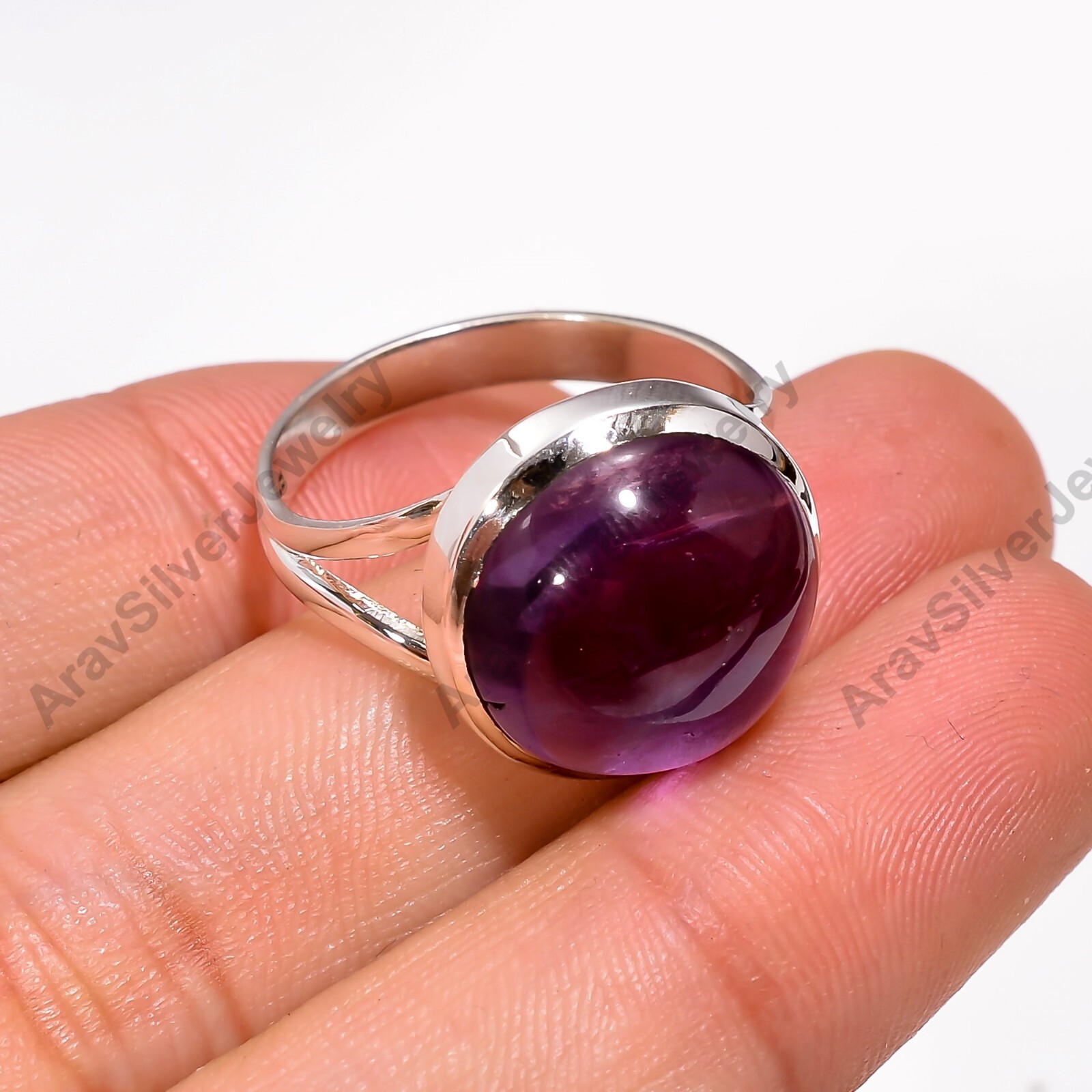 Amethyst Gemstone Ring Purple Stone 925 Sterling Silver Boho Rings Gift Jewelry