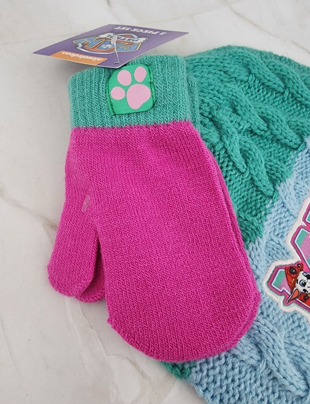 Girls Nickelodeon Paw Patrol Beanie Hat and Mittens Set Toddler Size 2T-5T New