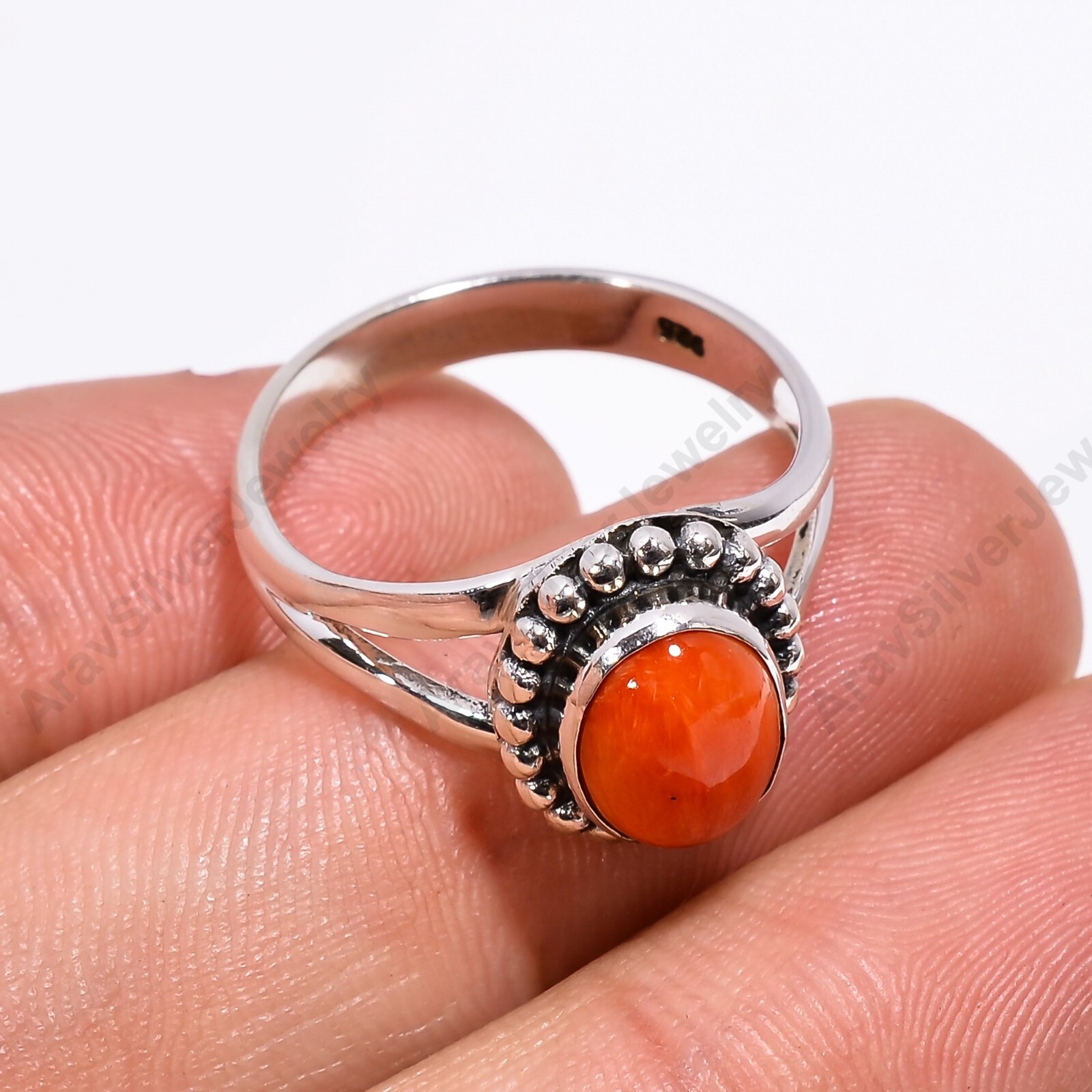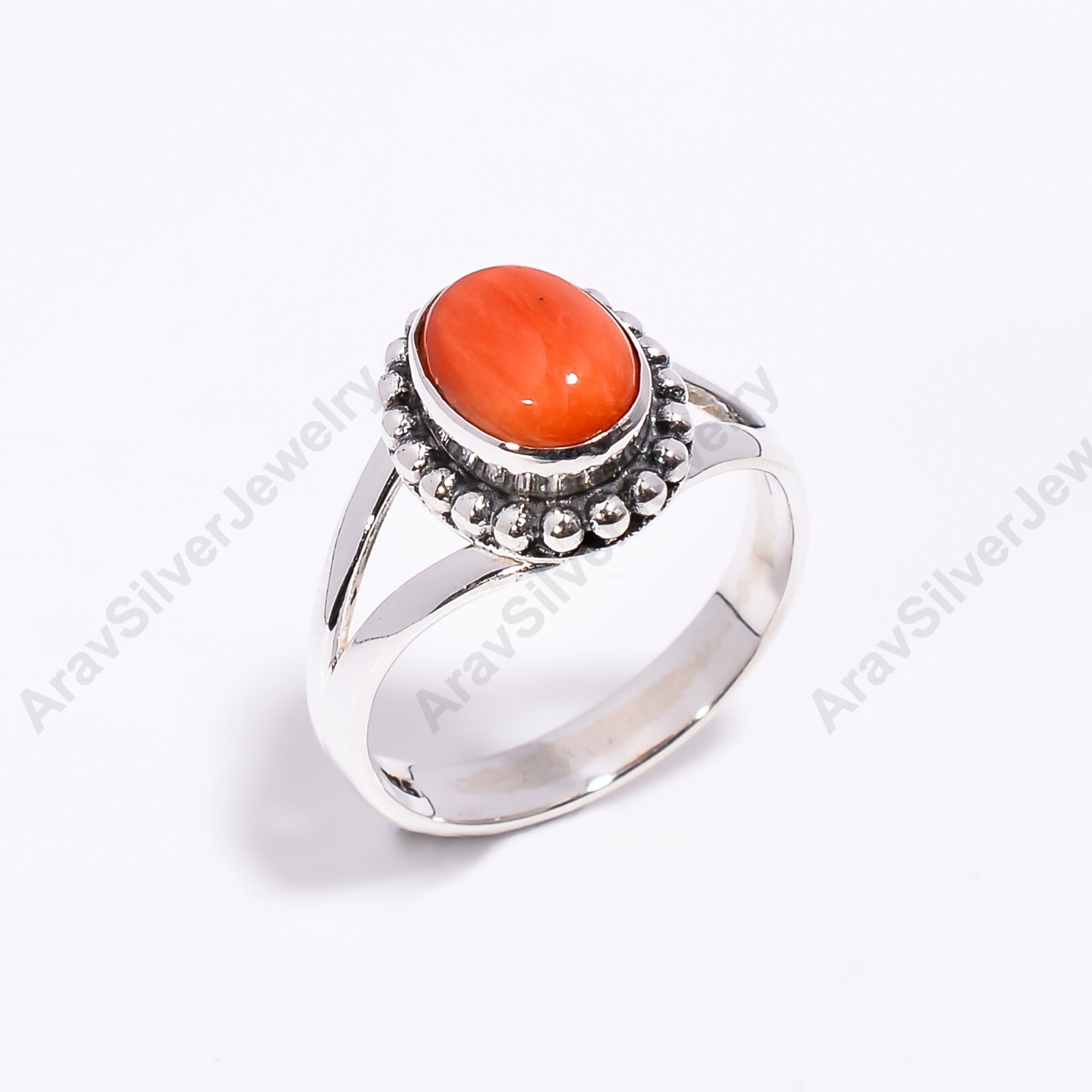 Red Coral Ring 925 Sterling Silver Promise Boho Rings Gift Jewelry for Women