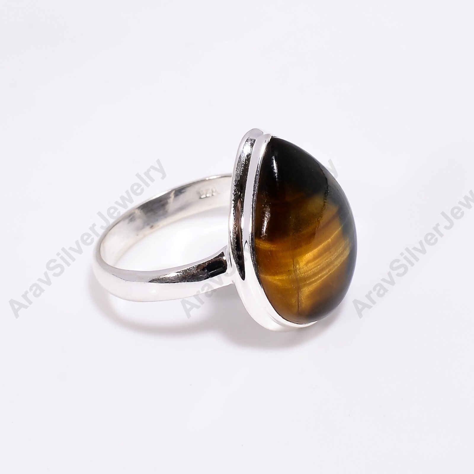 как выглядит Tiger Eye Gemstone Ring 925 Sterling Silver Boho Rings Gift Jewelry for Women фото
