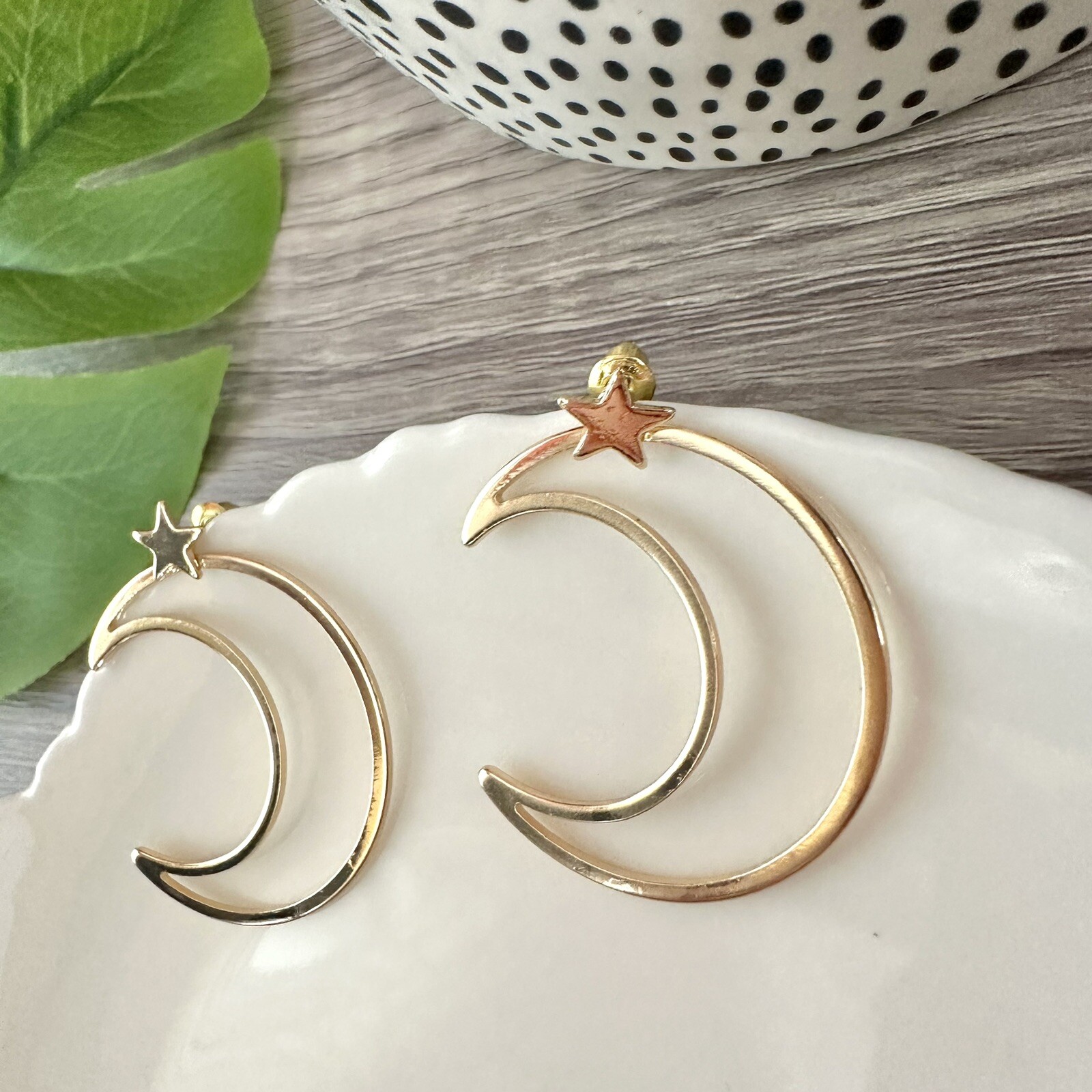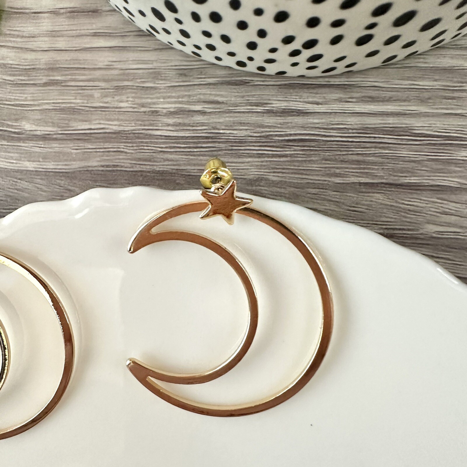 Gold Outline Crescent Moon Star Earrings Celestial Sky Boho Jewelry Gift NEW