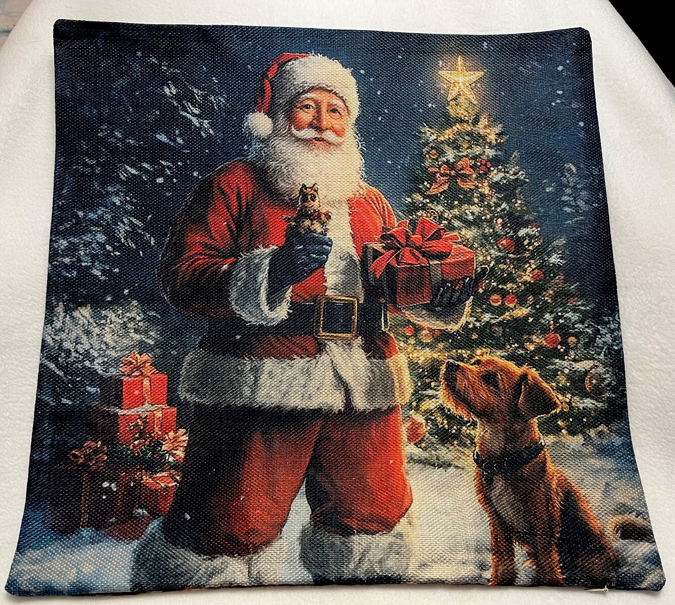 как выглядит Santa Dog Puppy Christmas Tree Throw Pillow Cover Winter Holiday Home Decor фото