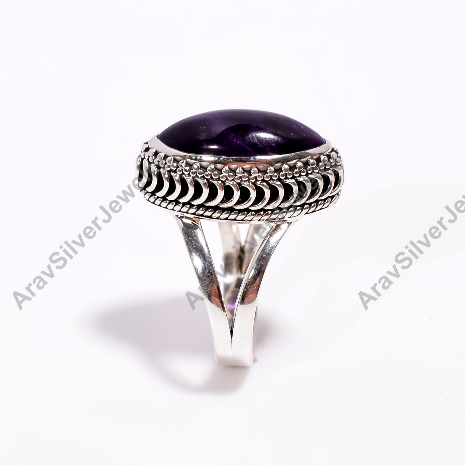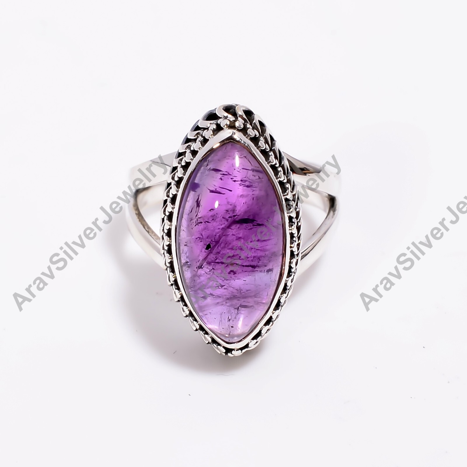 Marquise Shape Purple Amethyst Stone Ring 925 Sterling Silver Statement Rings